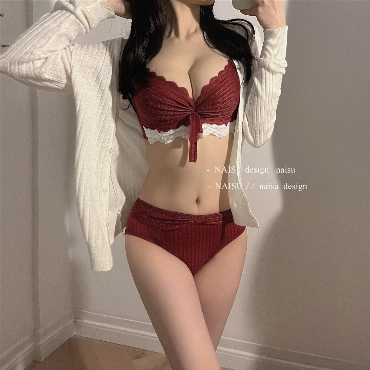 日系少女内衣女加厚小胸聚拢显大无钢圈蕾丝花边文胸套装性感胸罩