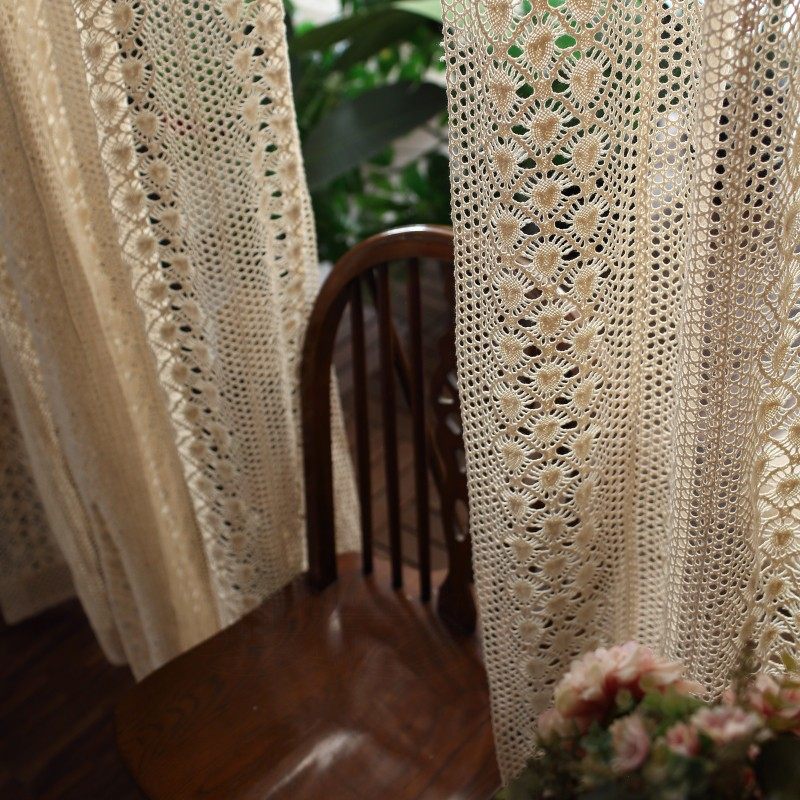 美式乡村田园风钩针成品窗帘定制