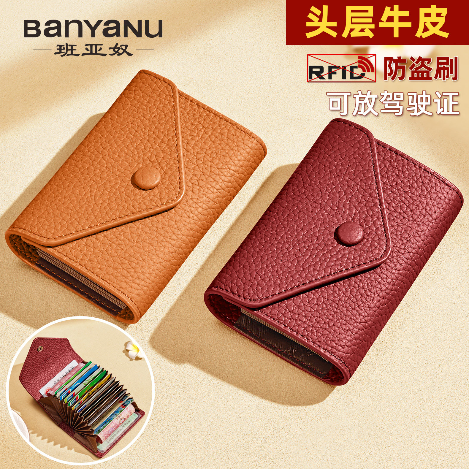 荔枝纹头层牛皮卡包女新款时尚小巧便携防盗刷消磁真皮驾驶证卡夹