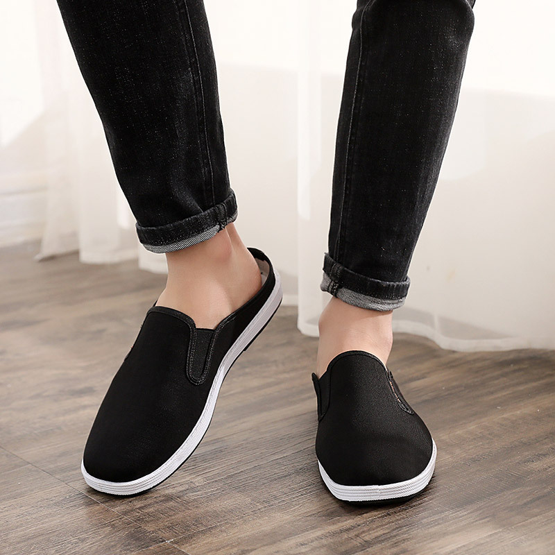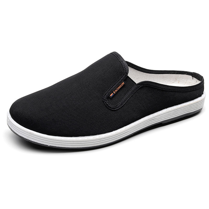 老北京布鞋春秋青年中老年男拖鞋大码黑色透气软底半托单鞋防滑