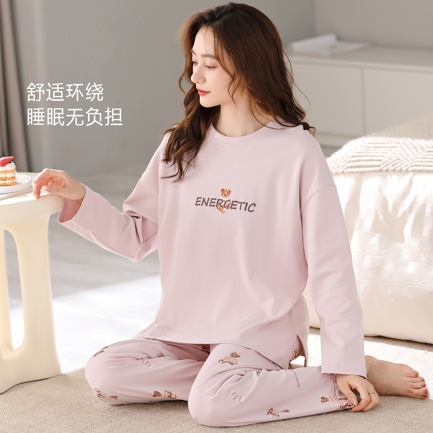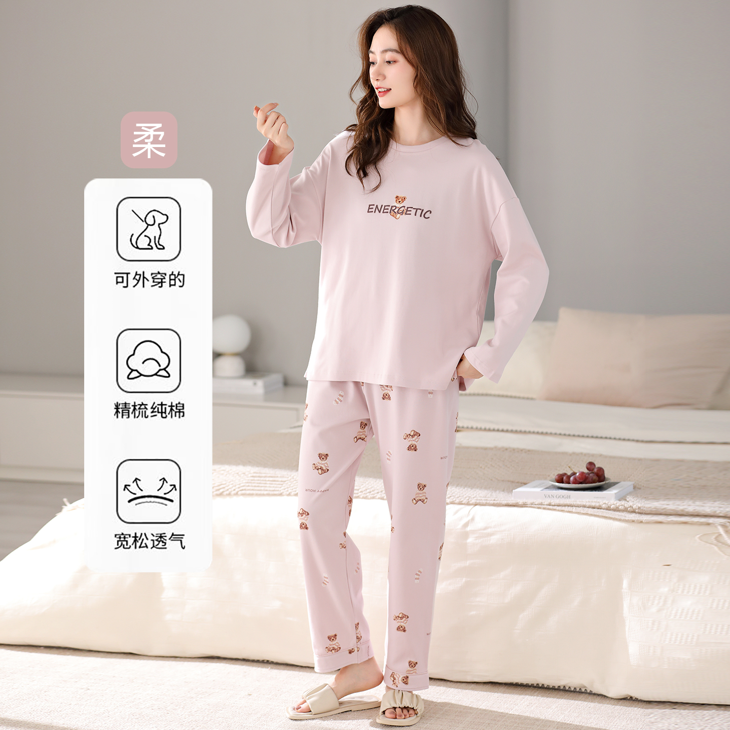 芬腾可安睡衣女款2025新款春装纯棉长袖女士春秋季休闲大码家居服