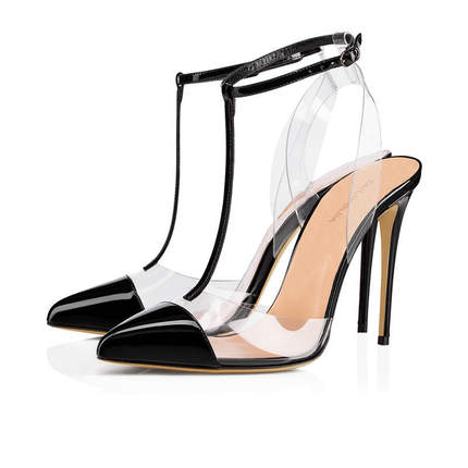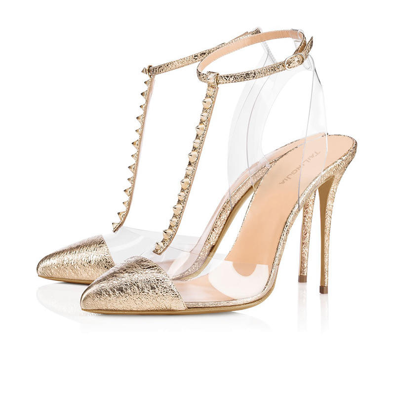外贸大码尖头高跟PVC凉鞋欧美女士露跟透明铆钉单鞋成都货源