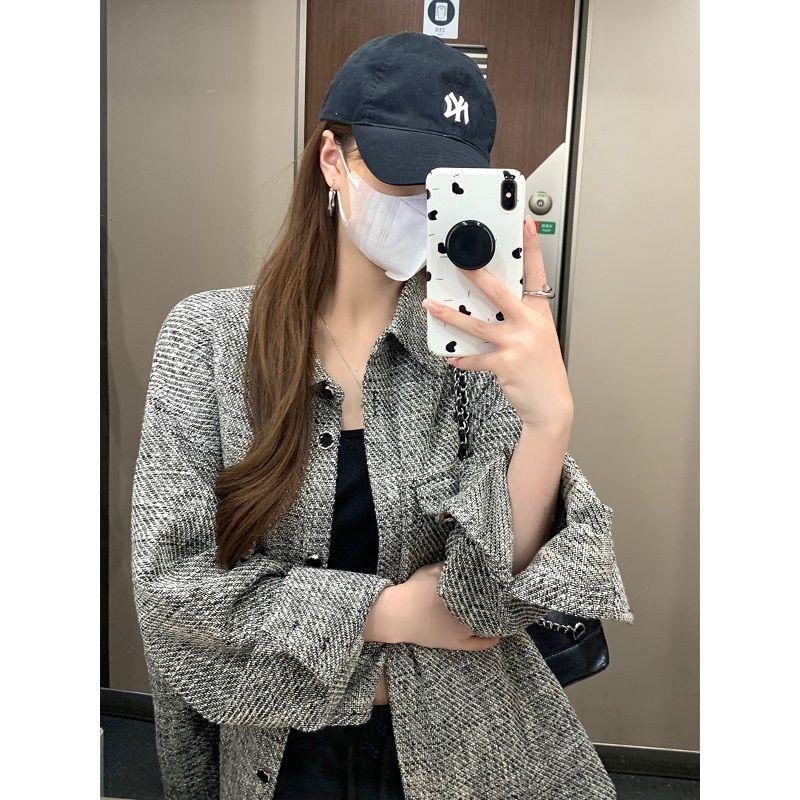 爆款厚面料法式小香粗花呢中长百搭外套女2025春秋赫本风衬衫外套