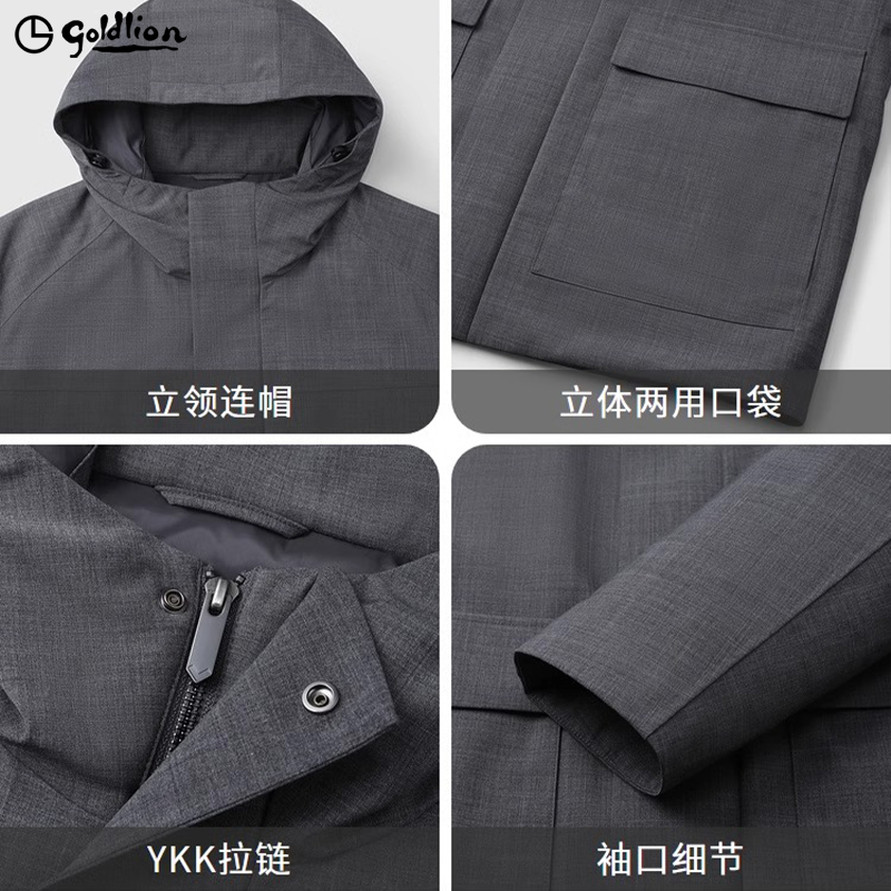 【可机洗鹅绒】金利来2025秋冬新款男格雷系羊毛中长款羽绒服外套