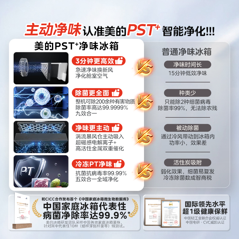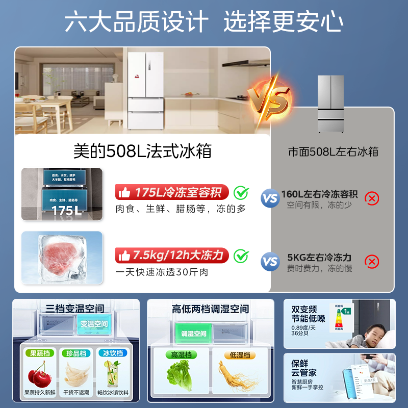 美的508法式多门双开四门双系统循环白色无霜一级大容量家用冰箱