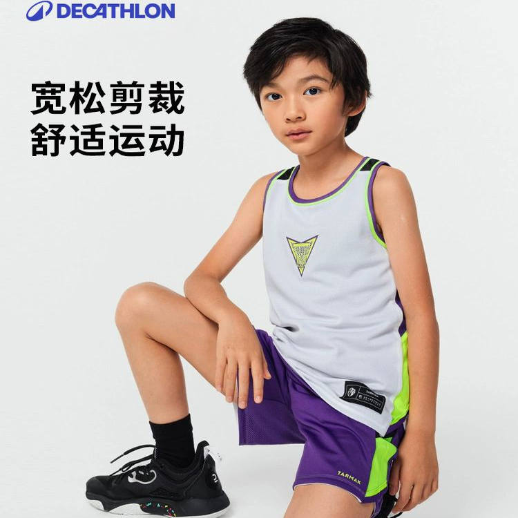 迪卡侬儿童篮球服男童背心夏季透气女双面上衣快干新夏季IVO3