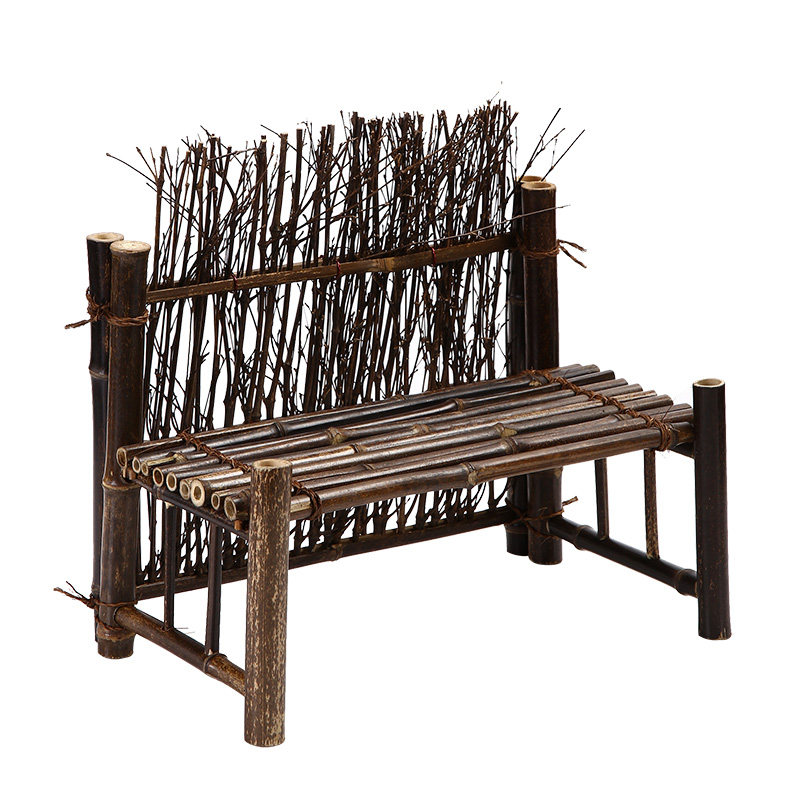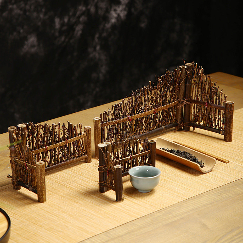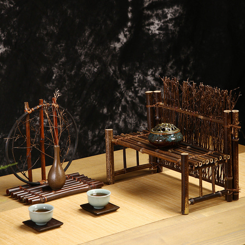 手工紫竹围栏竹制茶道装饰摆件