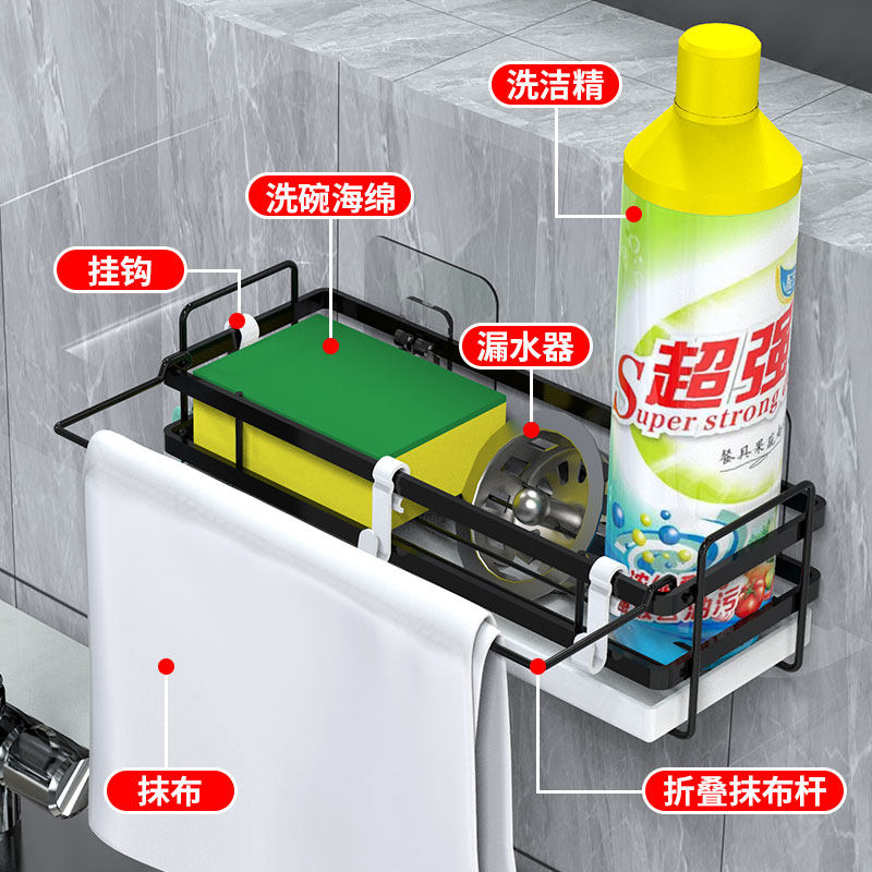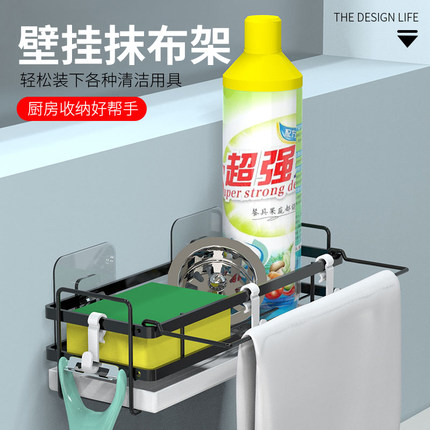 居家家洗碗海绵沥水架厨房水池抹布置物架免打孔壁挂式水槽收纳架
