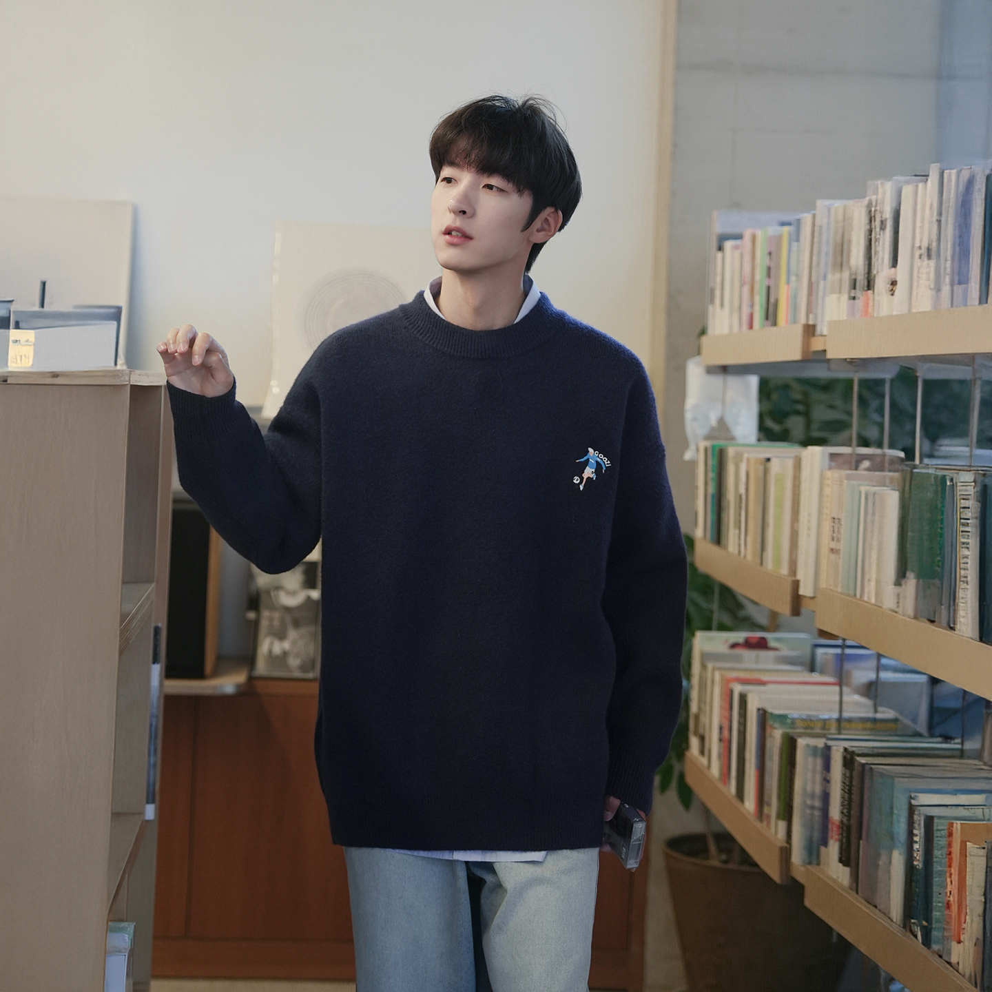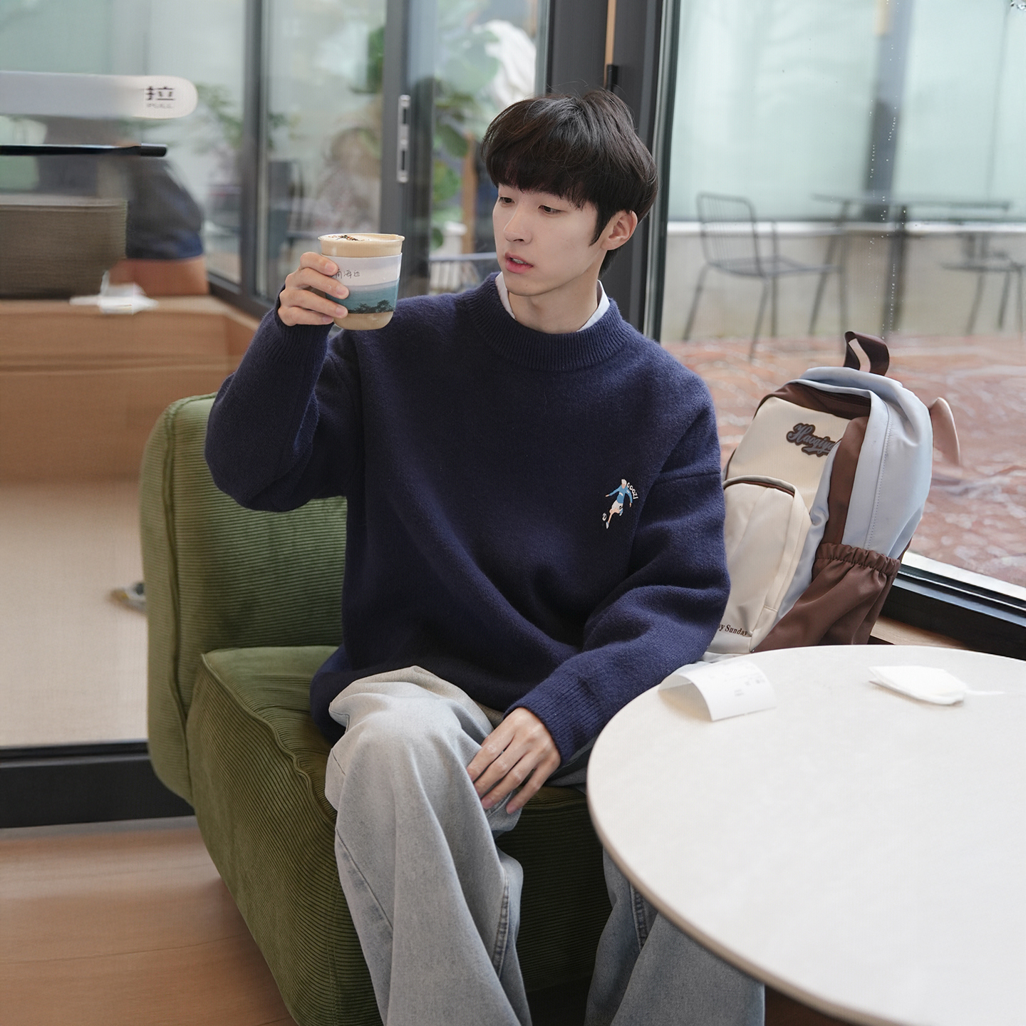 @港仔文艺男 提花毛衣男秋冬2025新款内搭男生冬季圆领针织衫男款
