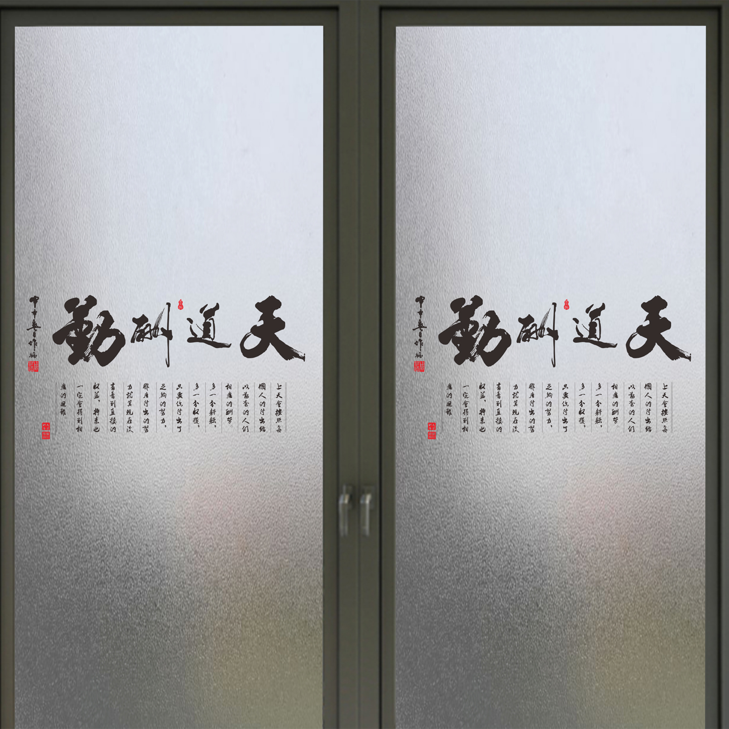 天道酬勤书法磨砂玻璃贴纸中式贴膜防窥隐私客厅办公室书房贴膜