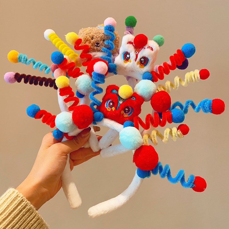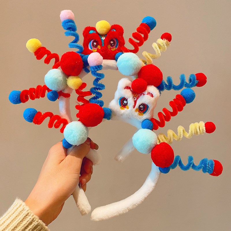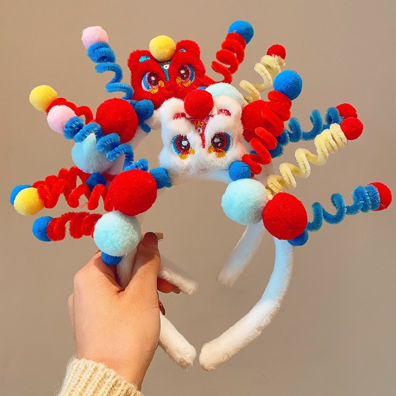 儿童醒狮发箍2024新款新年元旦春节头饰表演活动头饰可爱卡通头箍