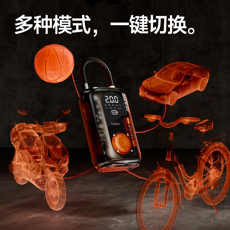 basa车载充气泵便携无线电动自行车打气筒汽车轮胎带测胎压打气泵