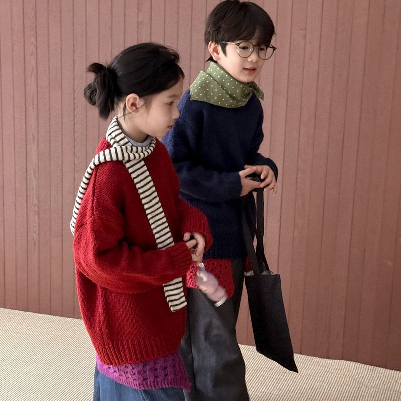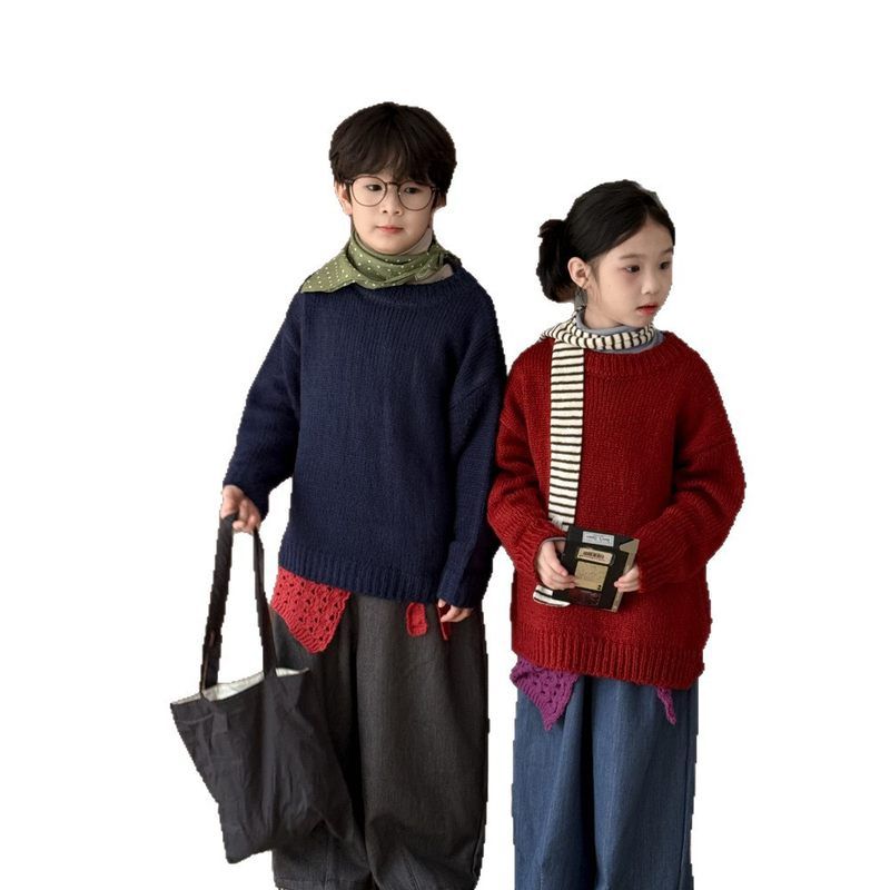 纯色童女童上衣2025圆领宽松套头毛衣秋冬毛衣休闲男针织韩版