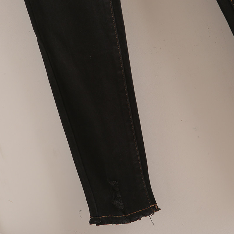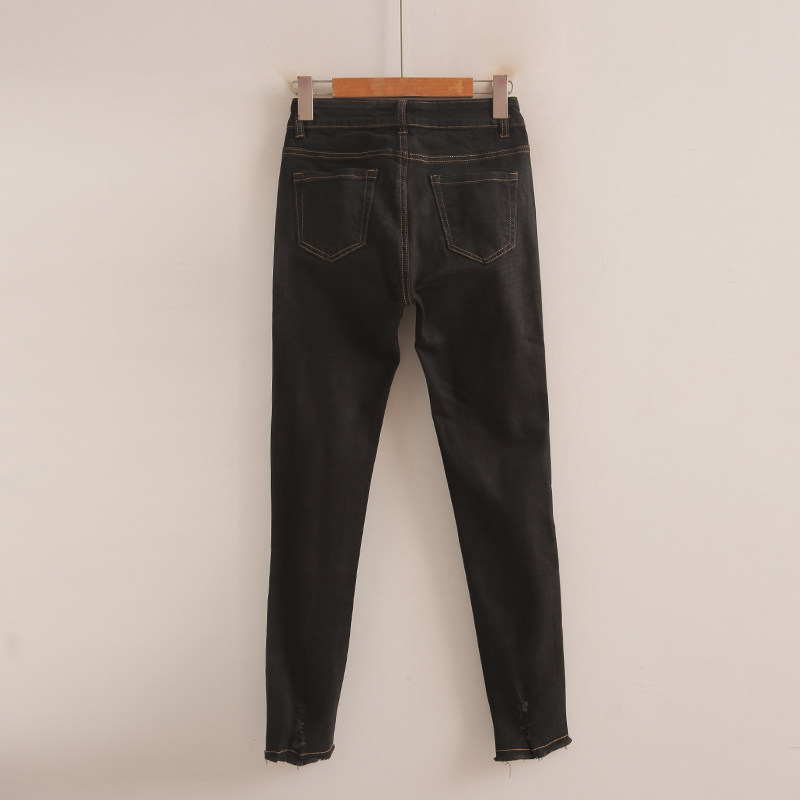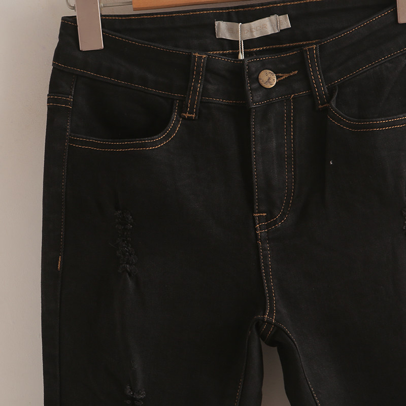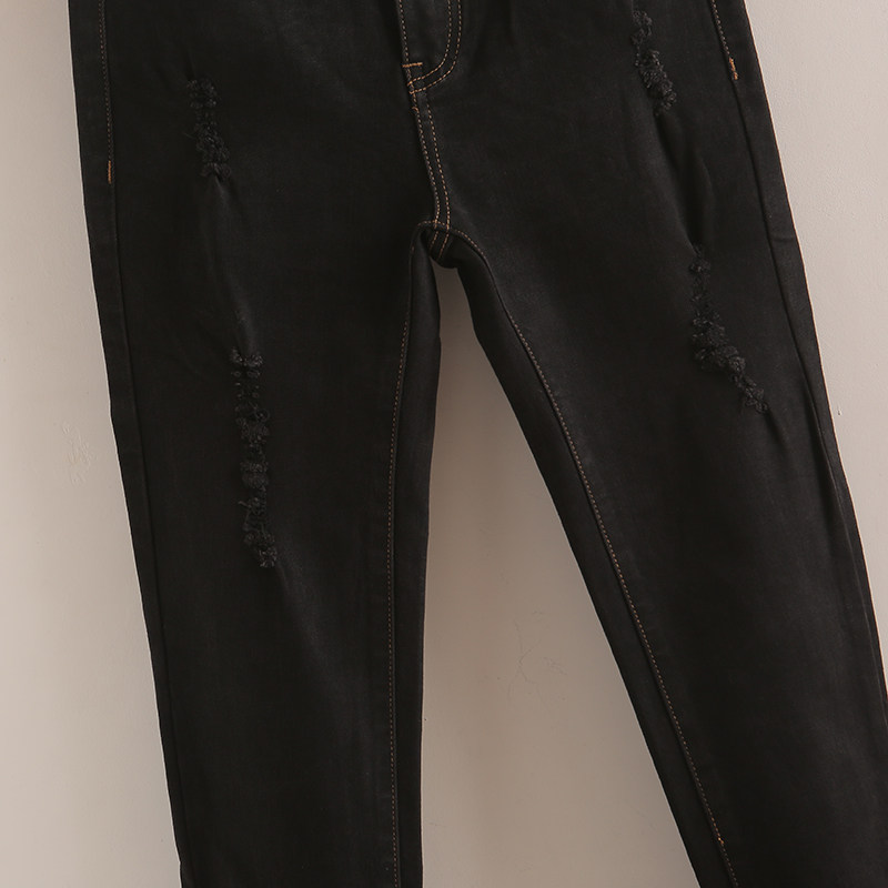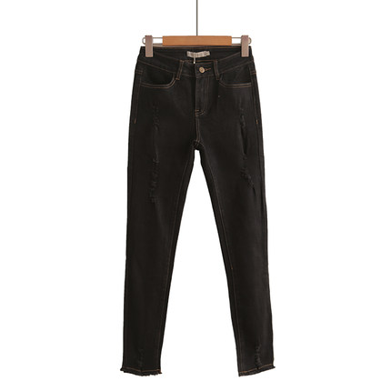 chic破洞紧身牛仔裤女春秋款九分裤复古弹力小脚裤韩版显瘦铅笔裤