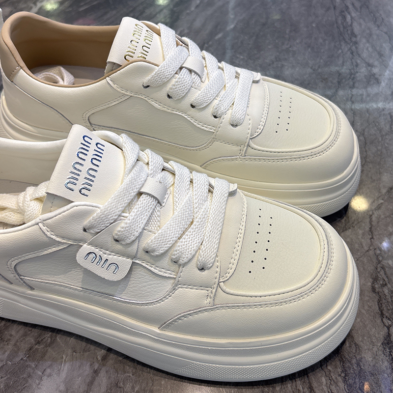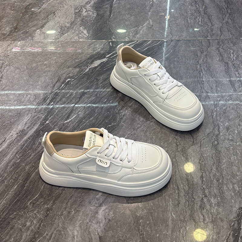 超轻底~真皮厚底舒适小白鞋女2025夏季韩版圆头系带休闲运动板鞋