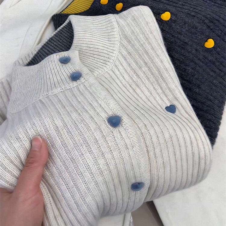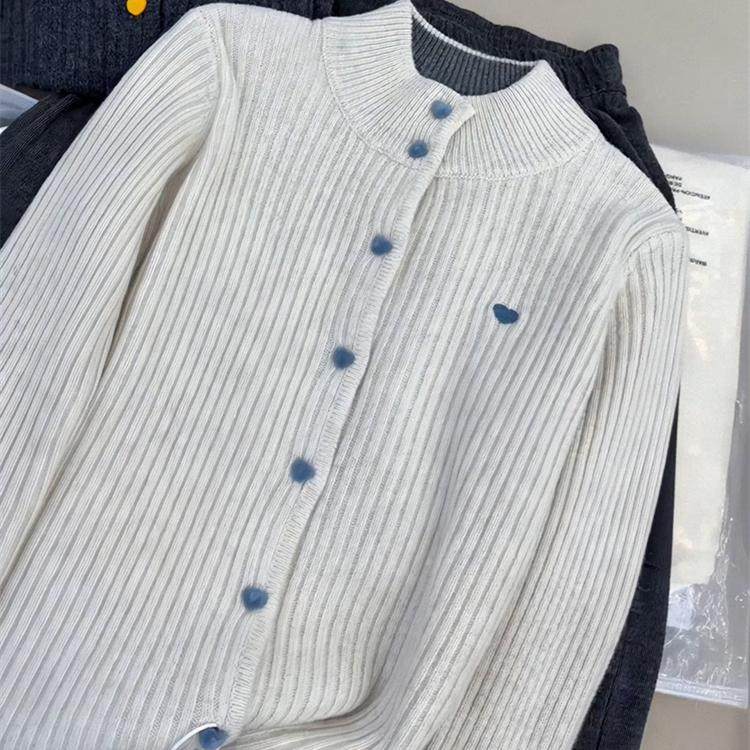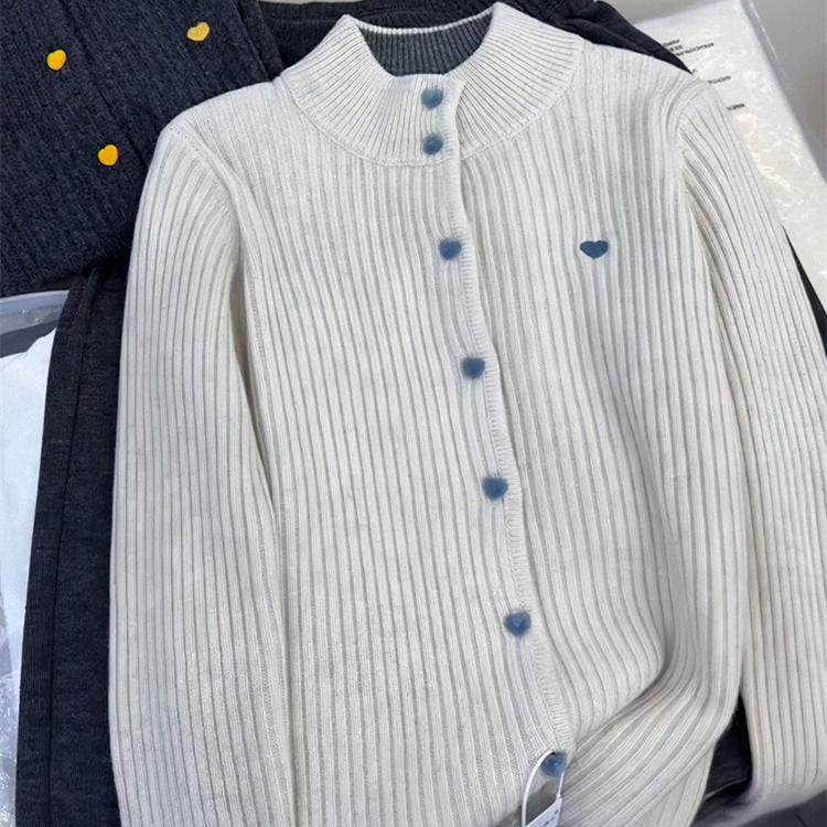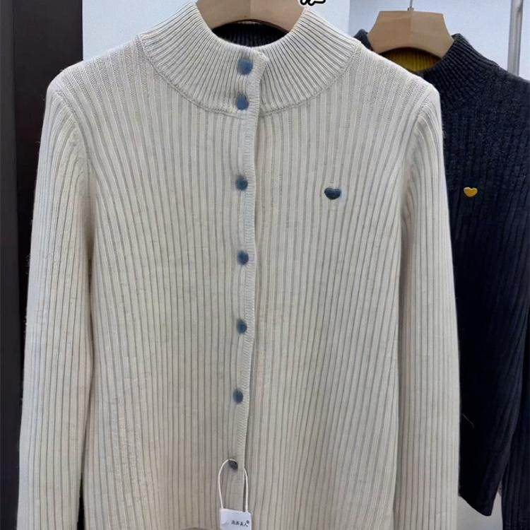 欧洲站2024秋冬款简约时尚半高领刺绣坑条羊毛针织开衫女毛衣外套