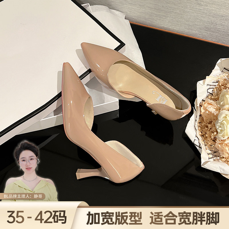 BL静哥加宽大码女鞋A36235新款红底高跟鞋侧空性感气质尖头单鞋女