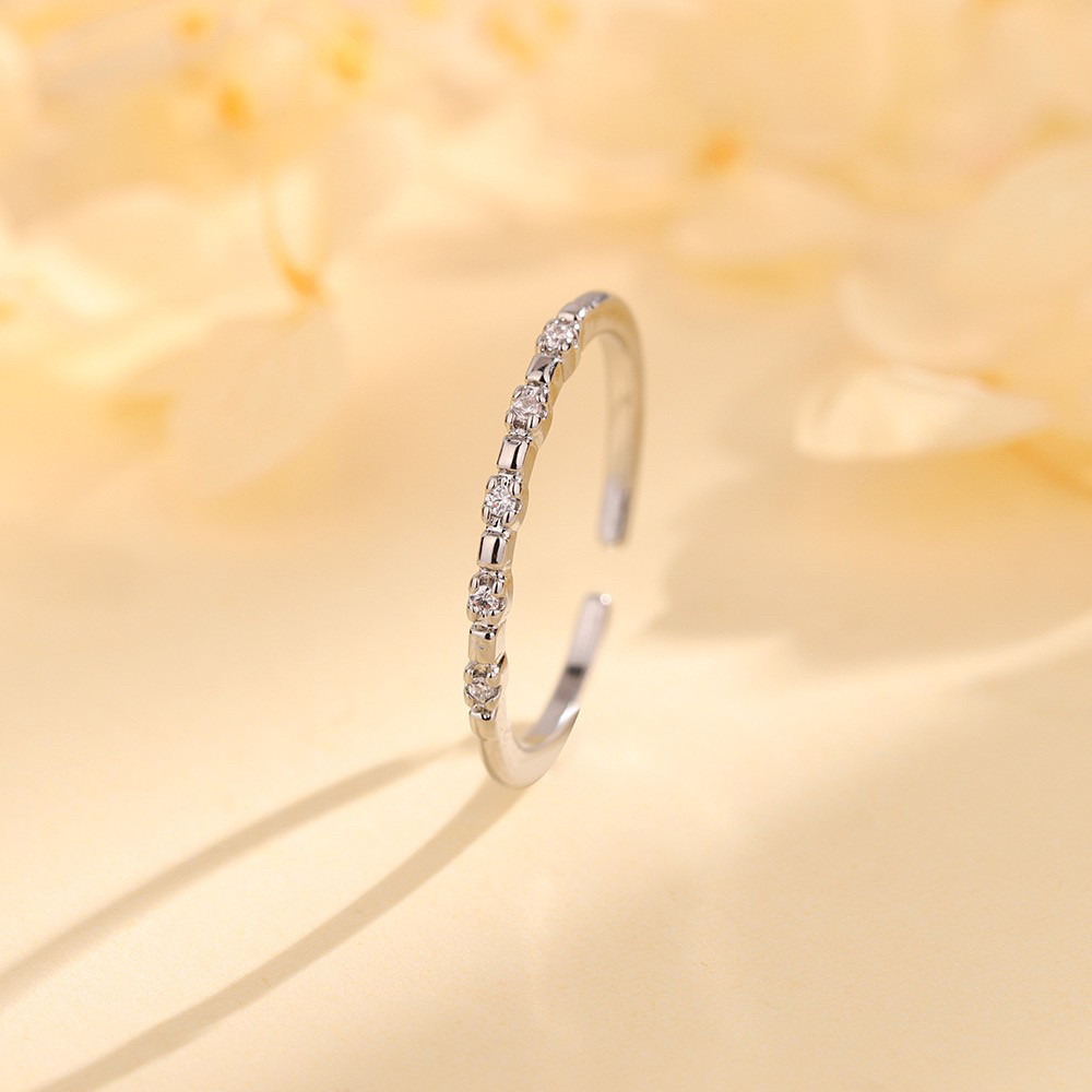 s925纯银闪钻戒指女小众高级感食指戒尾戒女轻奢素圈开口戒细圈指