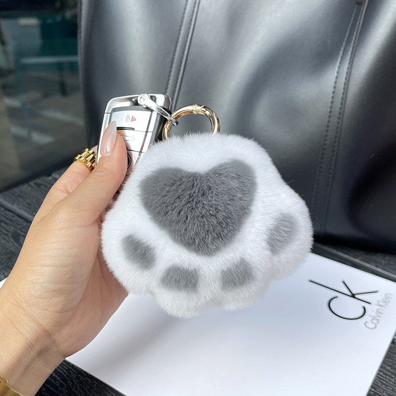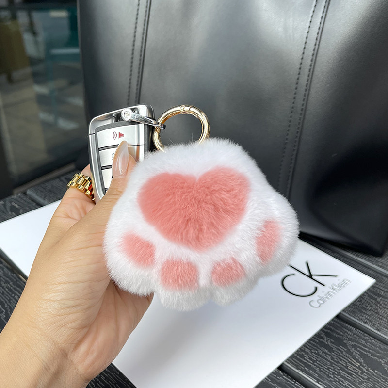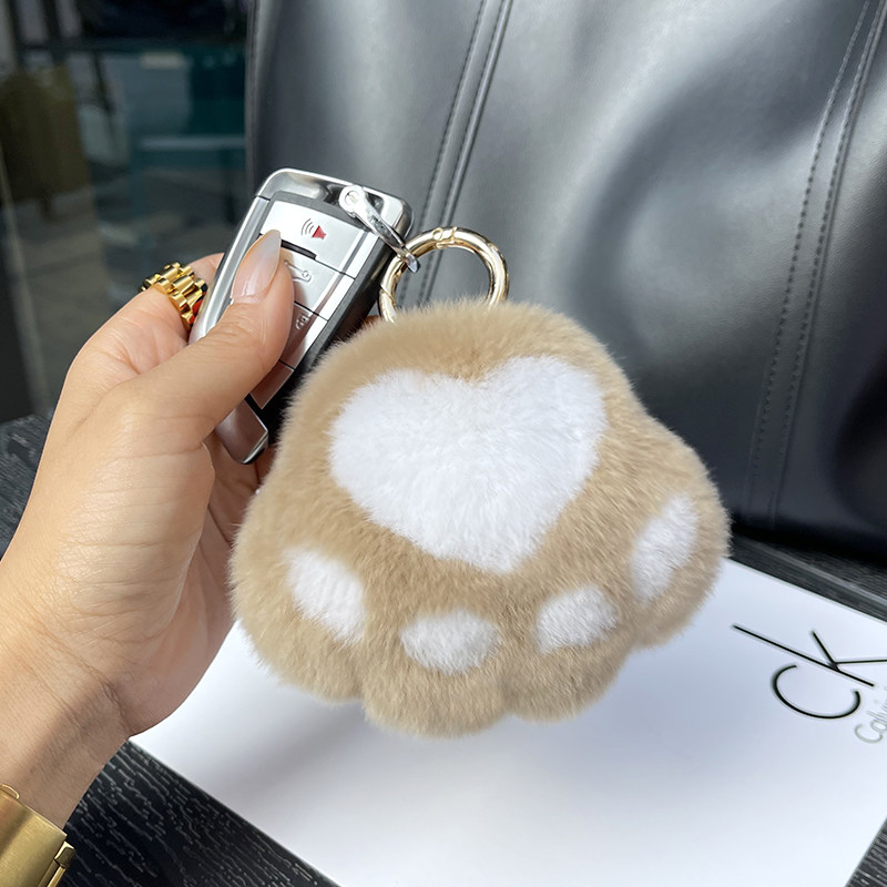 小猫爪真獭兔毛汽车钥匙扣挂件可爱爪子毛绒球包包挂饰生日礼物女