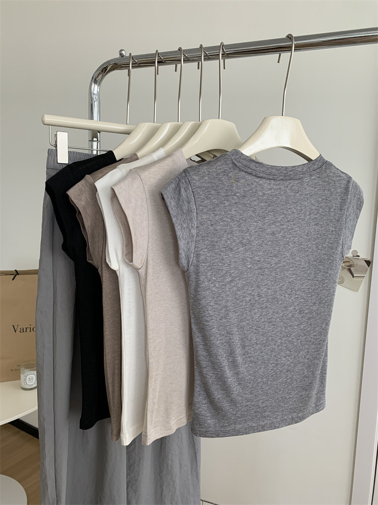 清仓尾货~专柜飞飞袖纯棉T恤女夏款短袖显瘦百搭正肩短款上衣