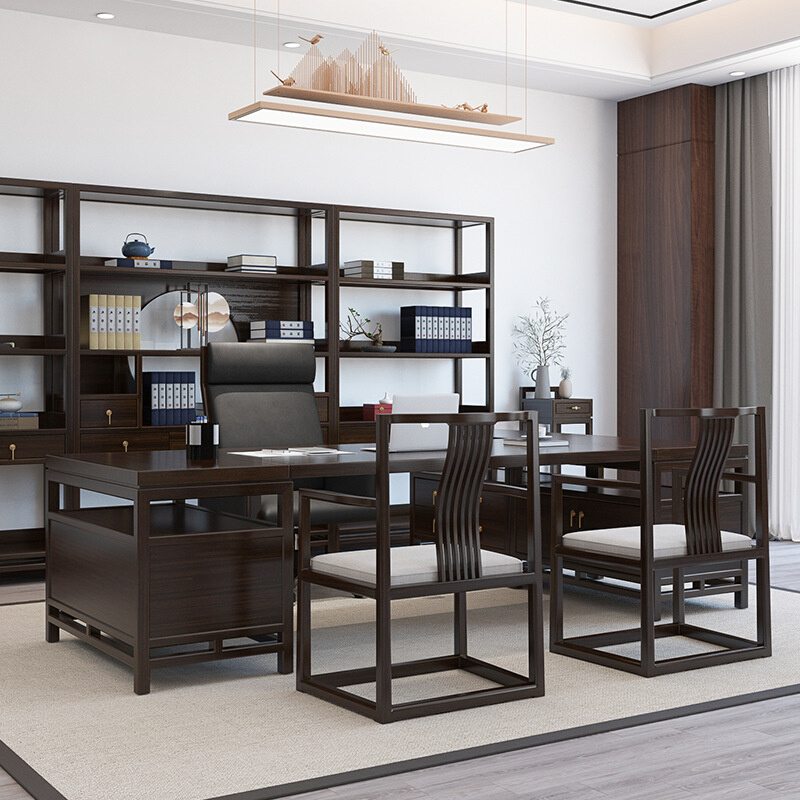 新中式实木办公桌转角简约现代电脑桌工作台书房书桌大班台老板桌