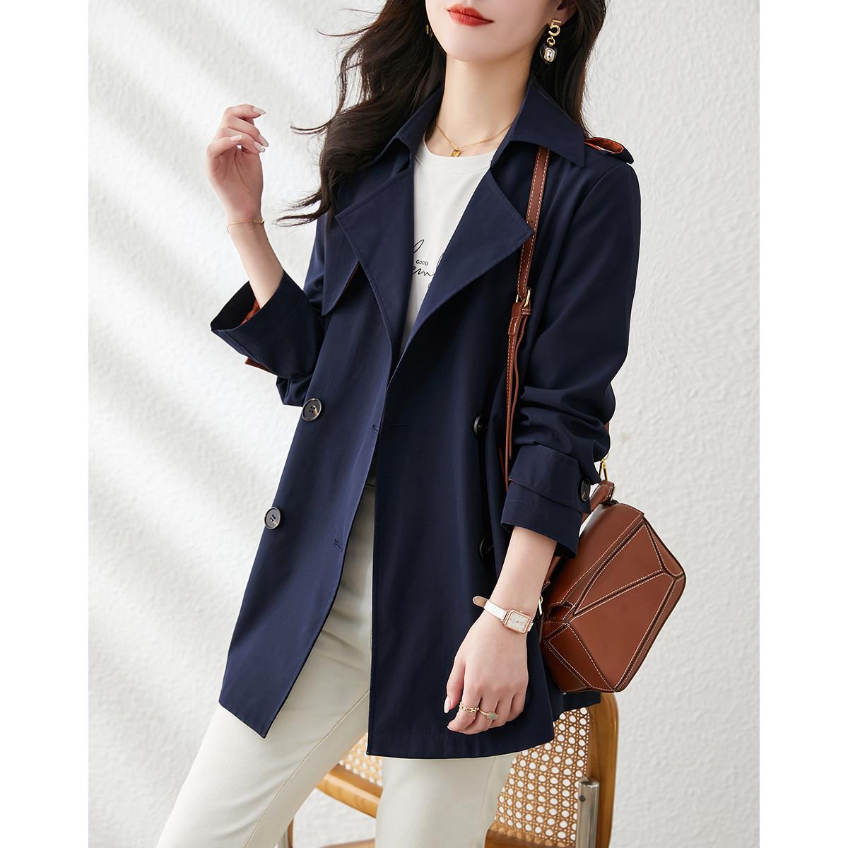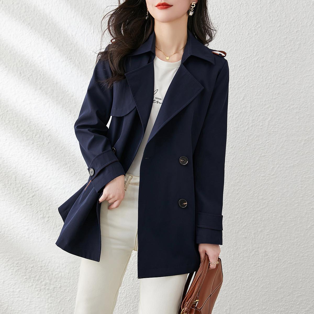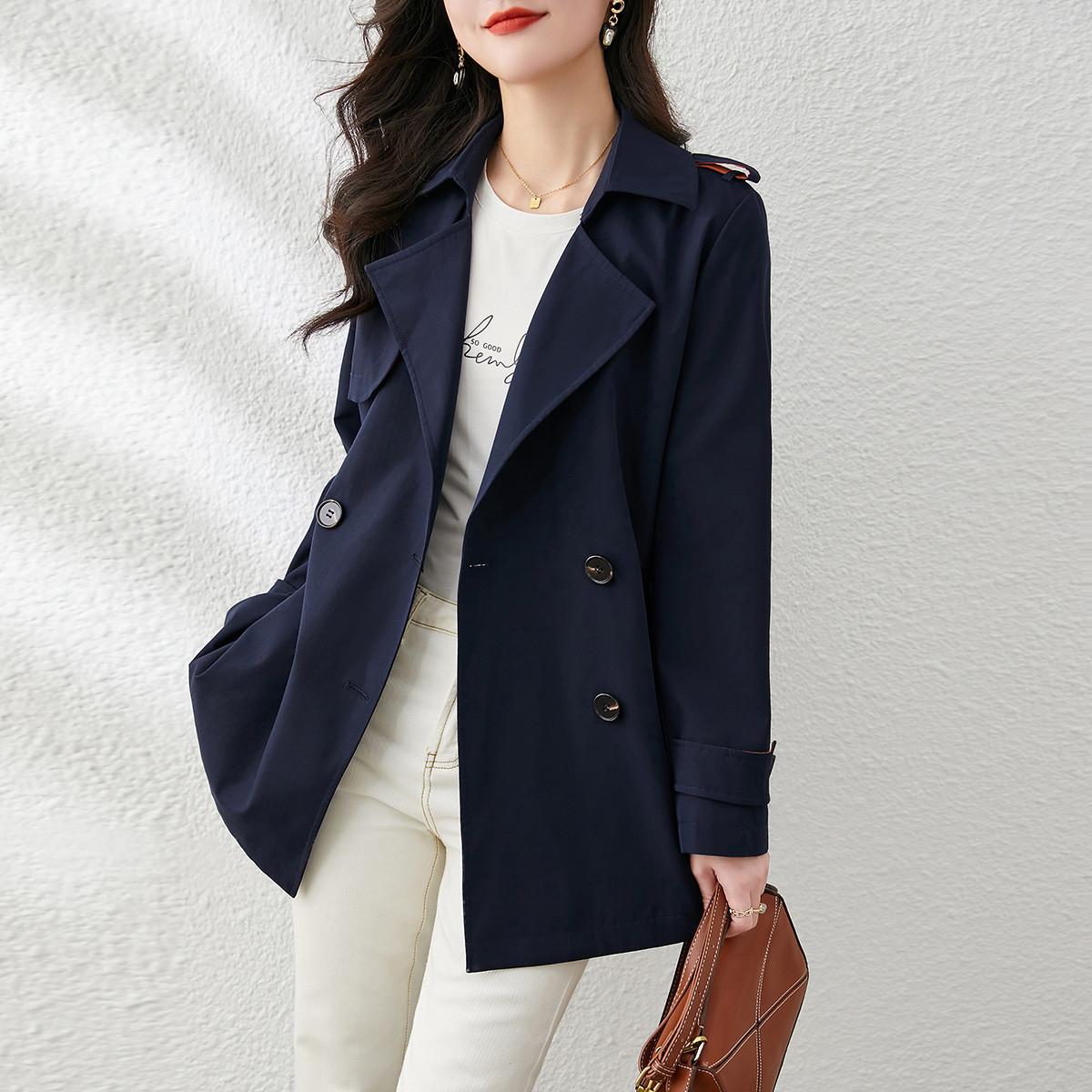 小个子休闲通勤百搭风衣2025春季新款简约气质双排扣直筒外套