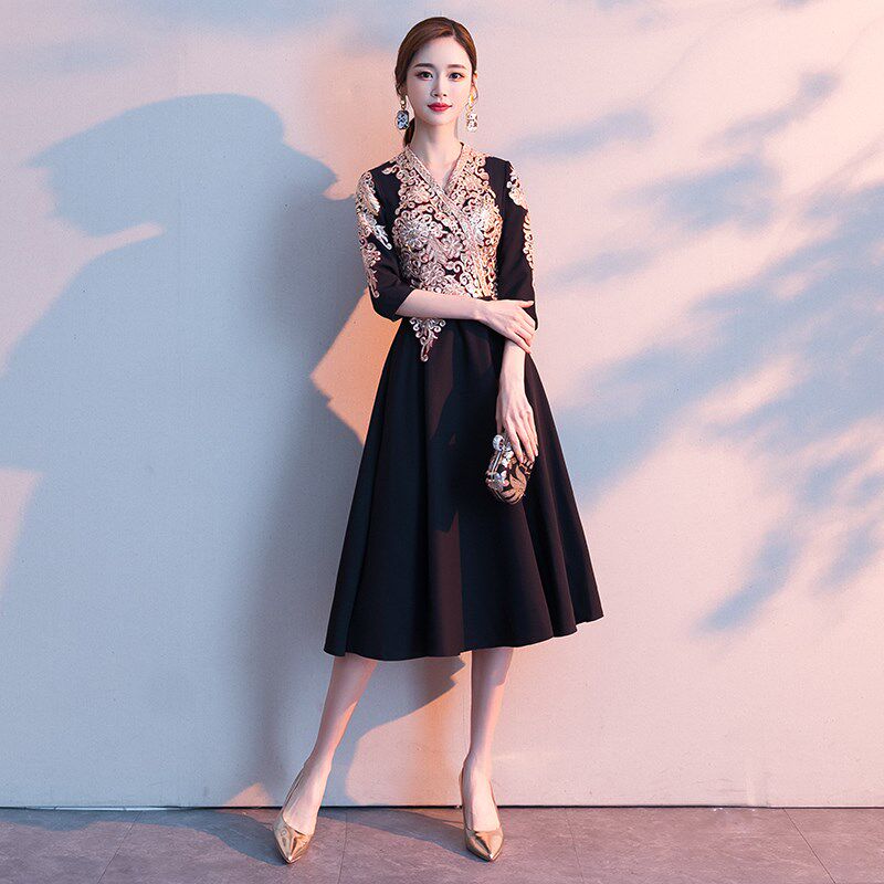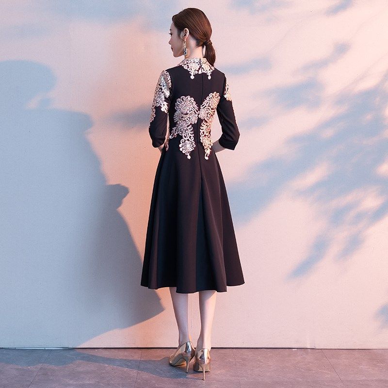 宴会晚礼服2021新款高贵气质生日聚会黑色中长款连衣裙女高端大气