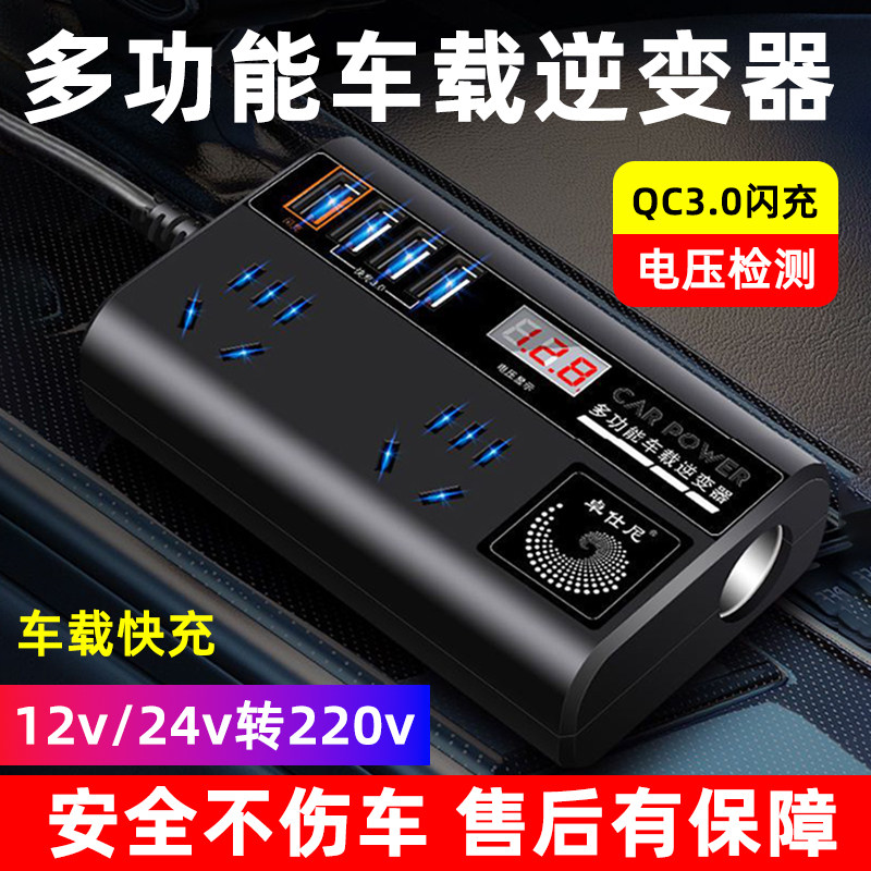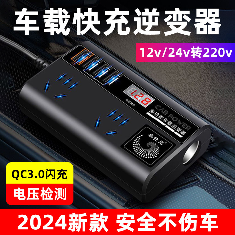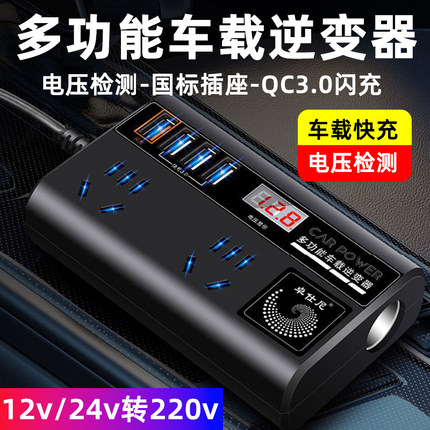 车载逆变转换器12v24v转220v大功率车载快速充电器多功能电源插座