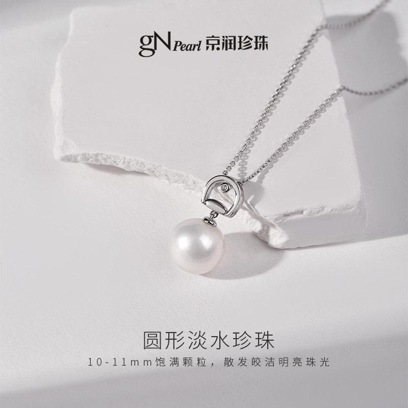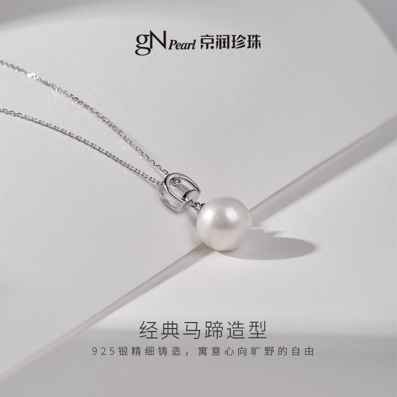 京润马跃新程925银淡水珍珠吊链10-11mm圆形强光马年本命年礼物D