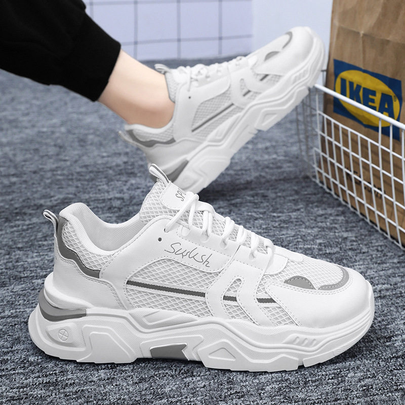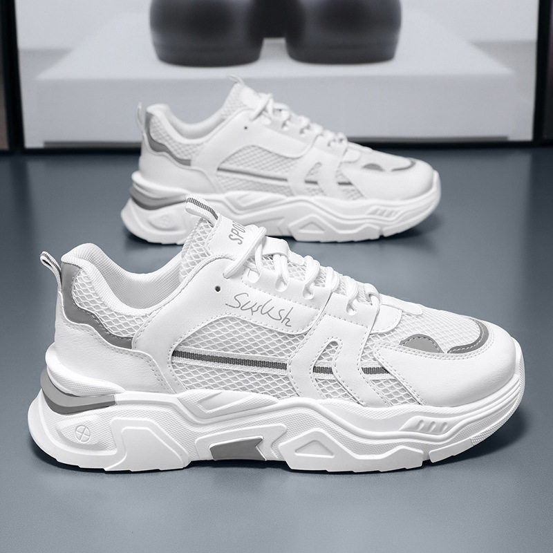 鸿星官网秋季男鞋新款透气网面鞋运动鞋潮流百搭内增高休闲老爹鞋