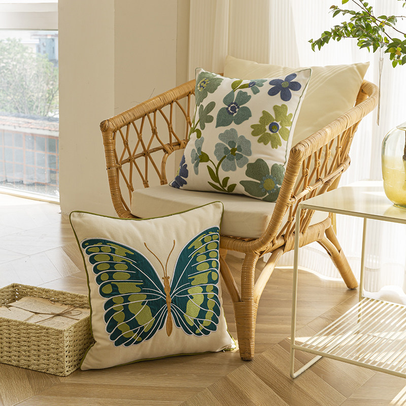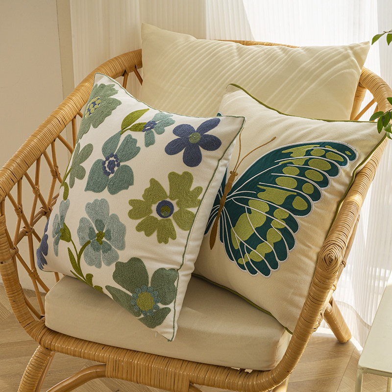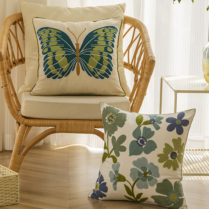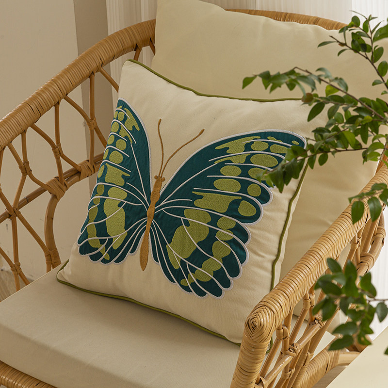 美式复古纯棉绿蝴蝶抱枕
