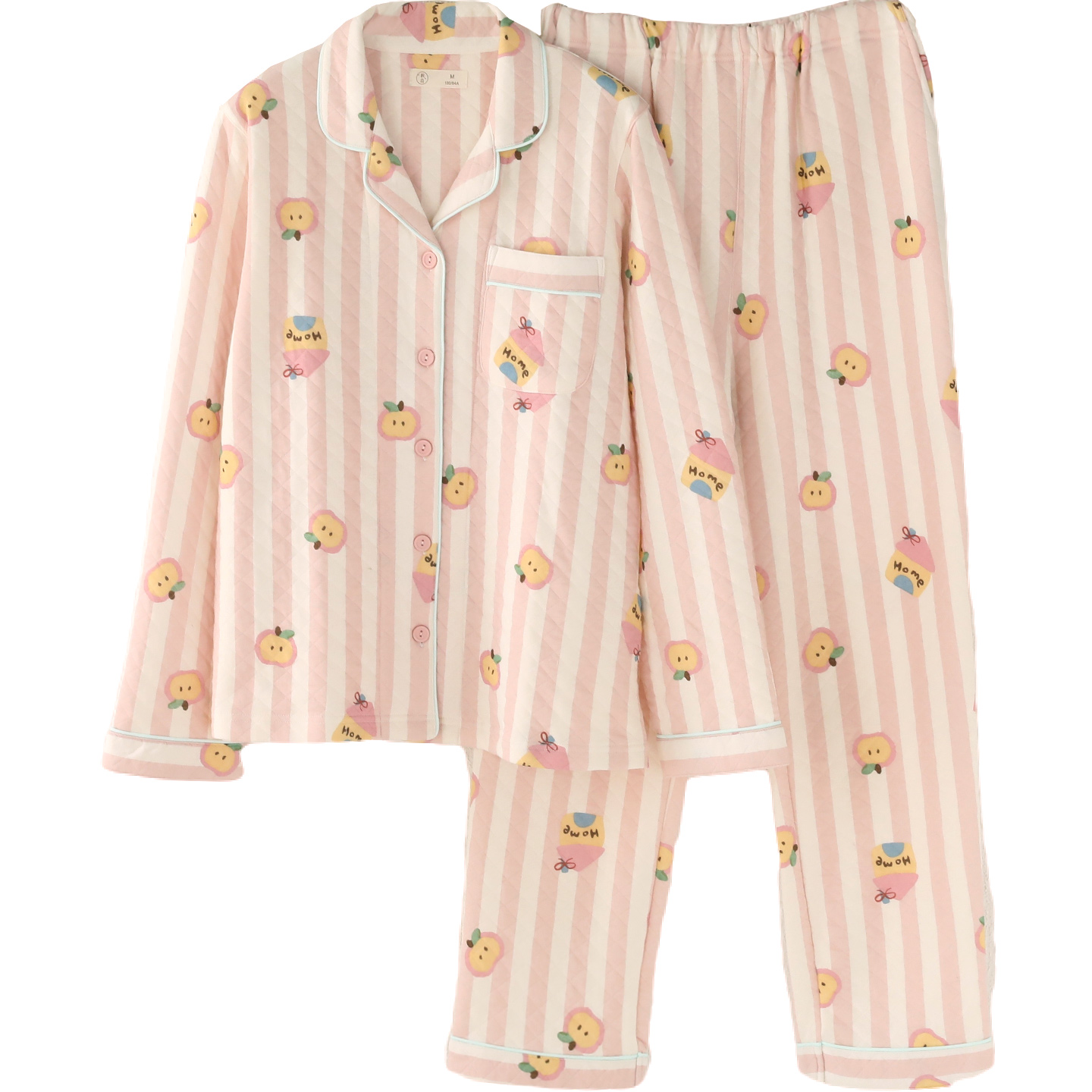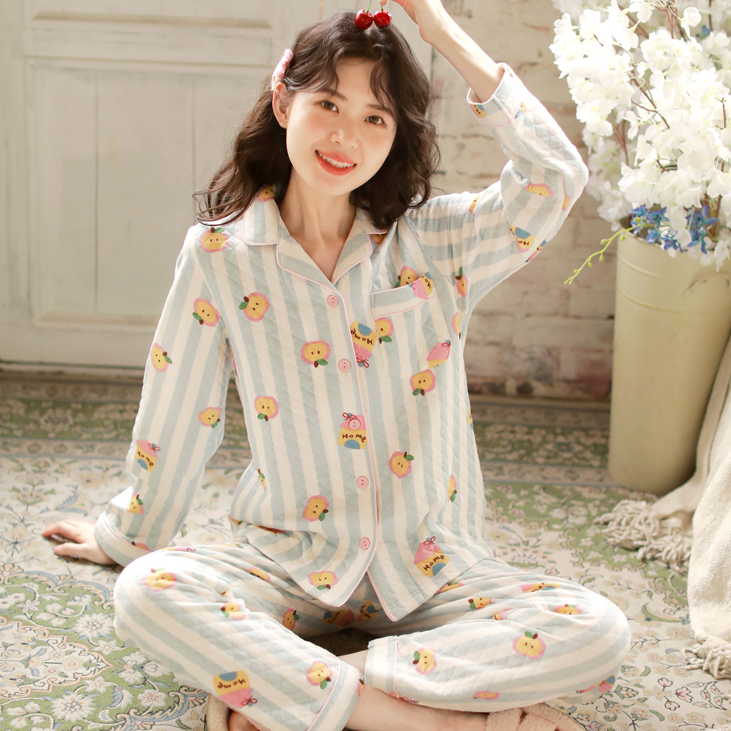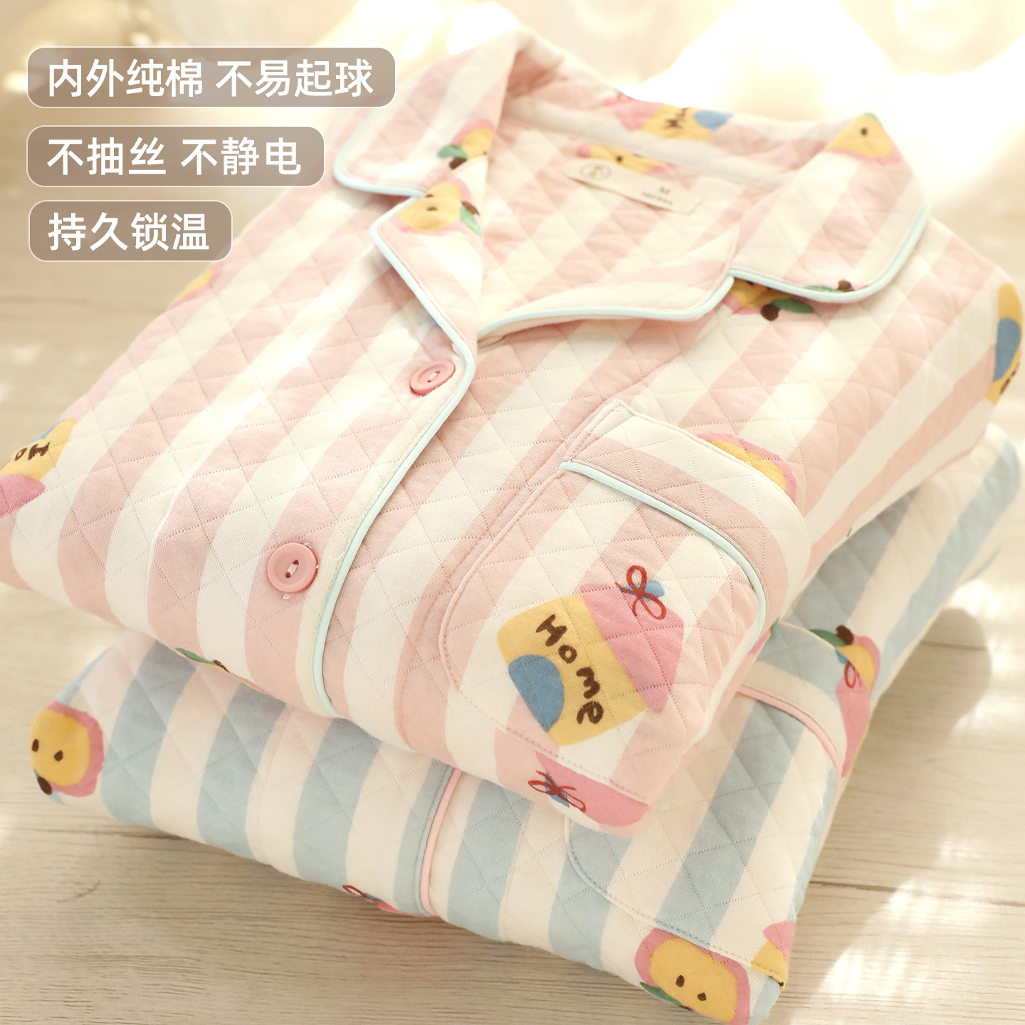 『眠岛』秋冬加厚睡衣女夹棉空气层保暖套装可爱卡通纯棉家居服