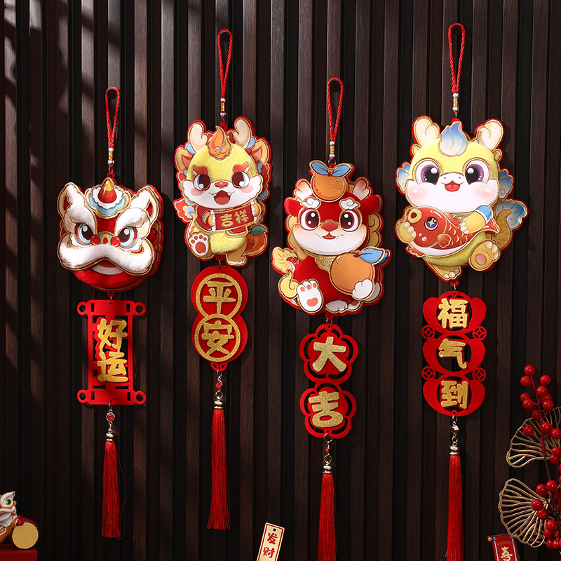 2024新款龙年装饰用品毛绒生肖挂件新年过年场景布置春节客厅门挂