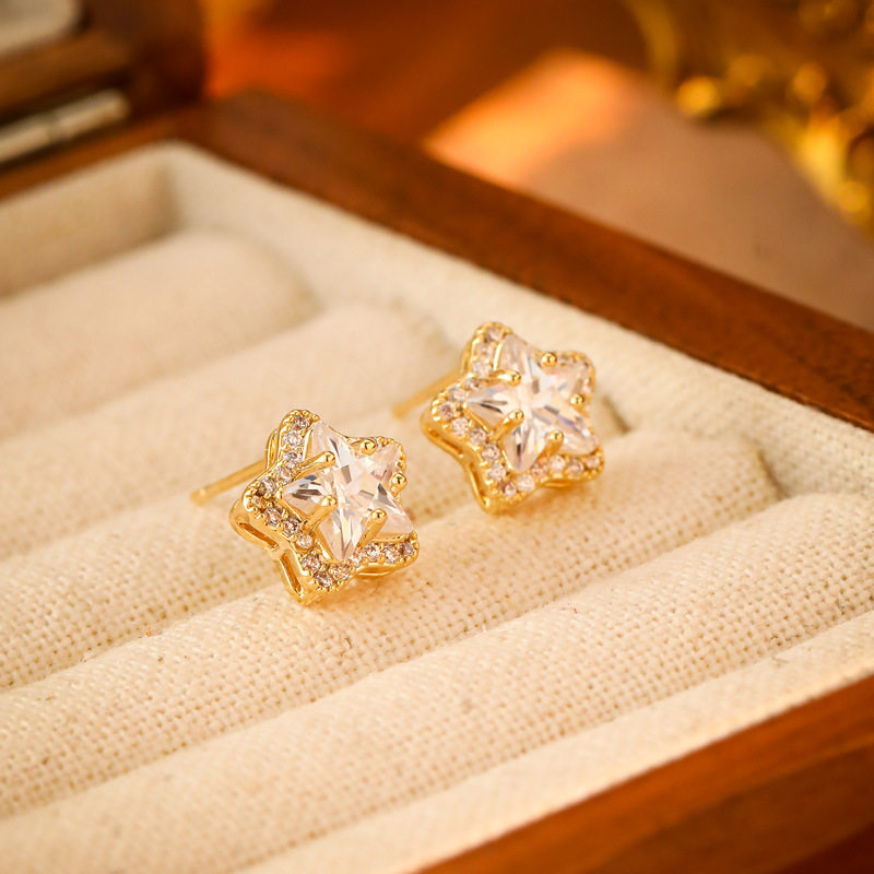 爆款超闪微镶五角星耳钉女高级感时尚轻奢风精美设计耳环百搭耳饰