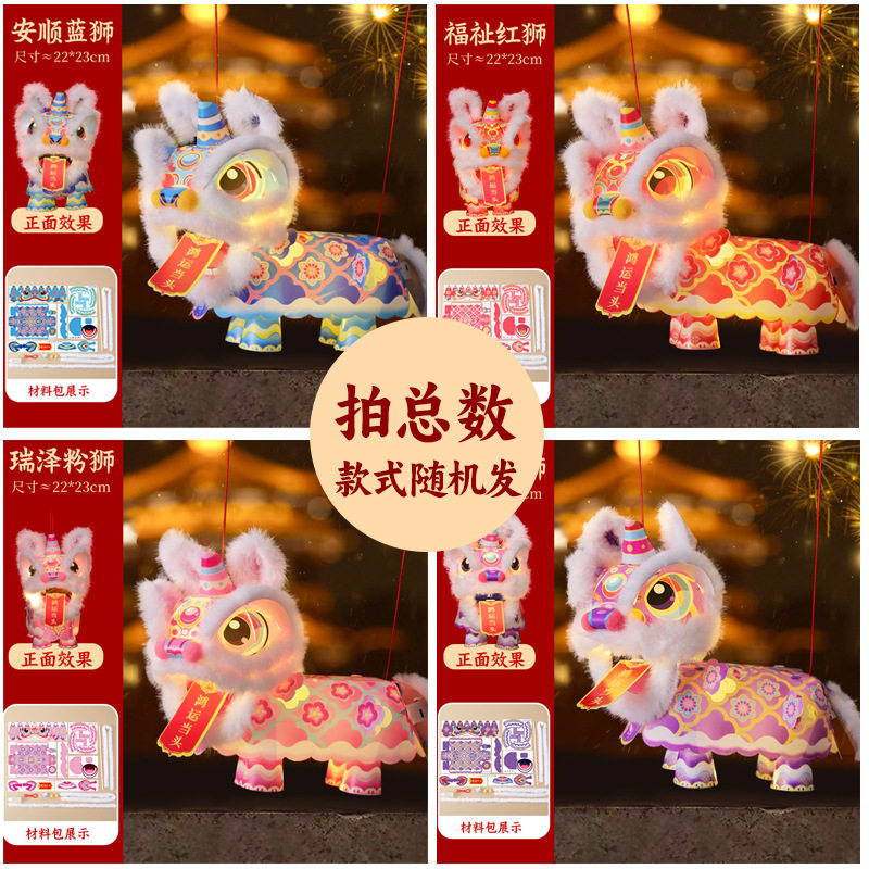 元旦节新年灯笼手工diy国潮醒狮灯儿童手提发光狮子花灯2026新款