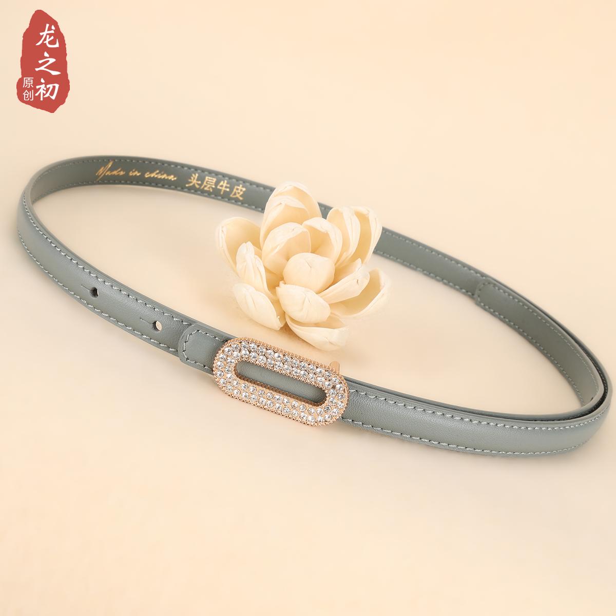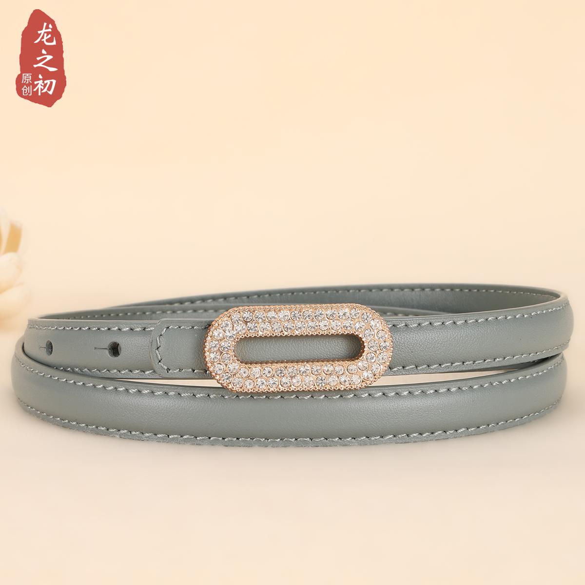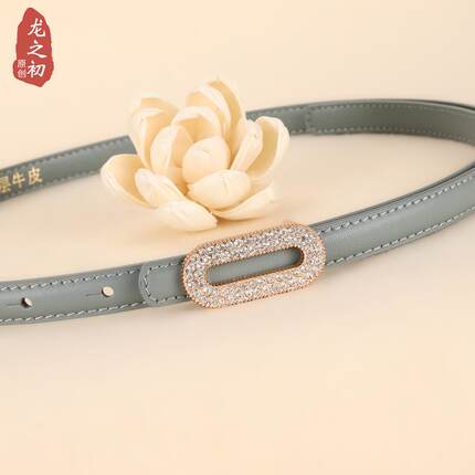 雾霾灰小皮带女时尚百搭头层真皮牛皮细腰带小众高级感配裙子西装