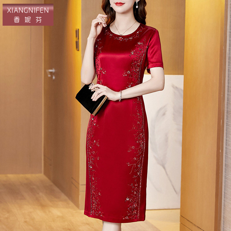 香妮芬高端精致奢华妈妈婚宴礼服连衣裙女2026新款夏季醋酸宴会装