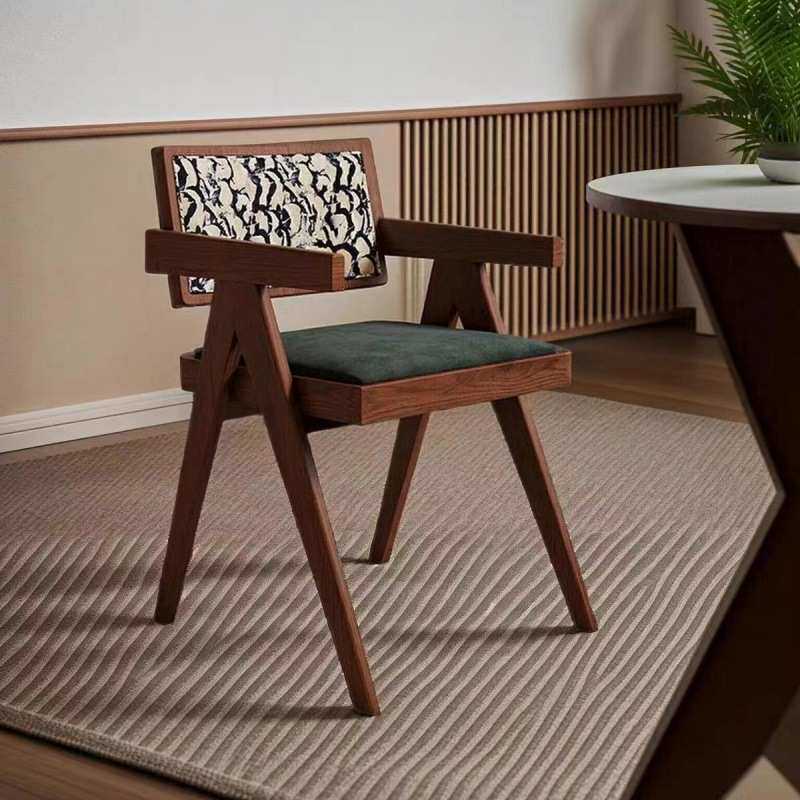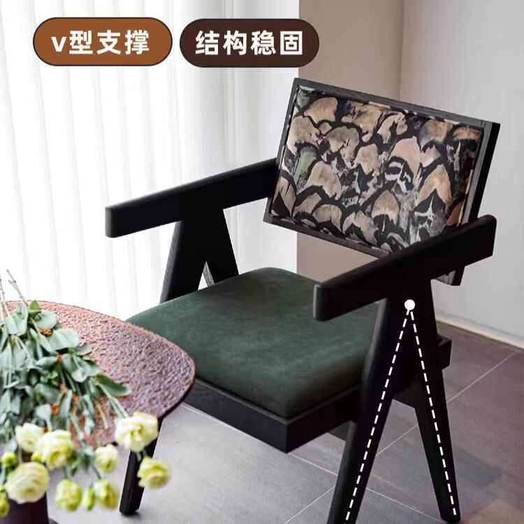 法式复古风餐椅家用餐厅单人沙发椅子网红设计师款中古昌迪加尔椅