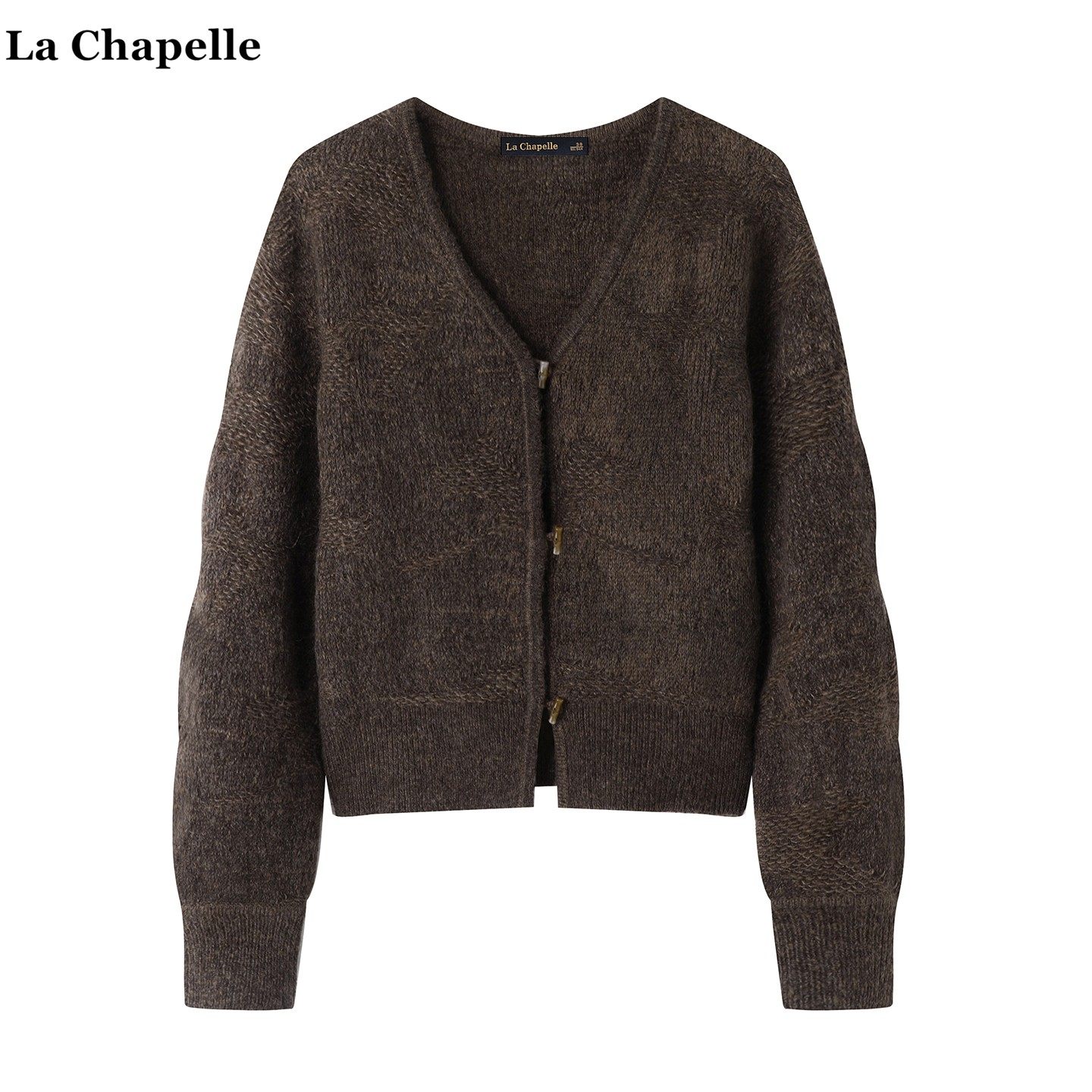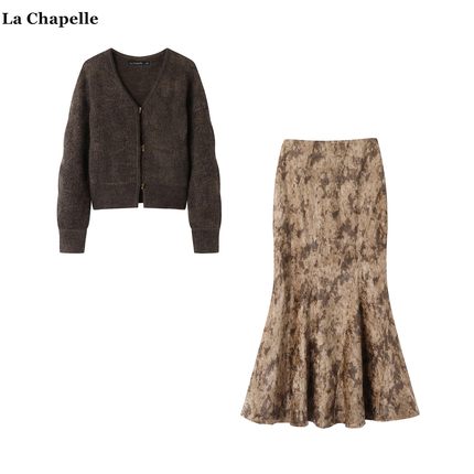 拉夏贝尔/La Chapelle秋季小香风牛角扣针织开衫鱼尾半身裙套装女