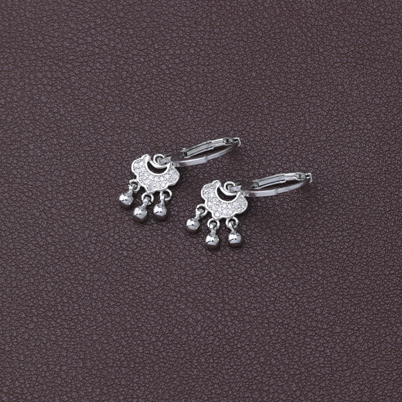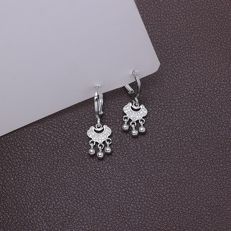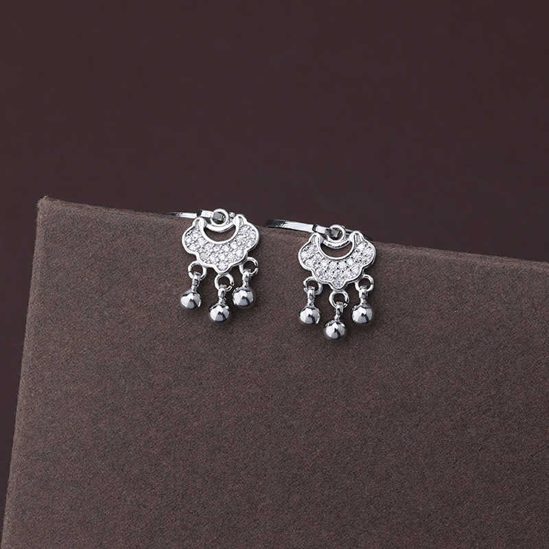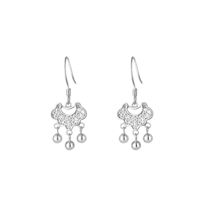 s925纯银镶钻平安锁耳环女气质长命锁小众福锁耳扣耳坠高级感耳饰