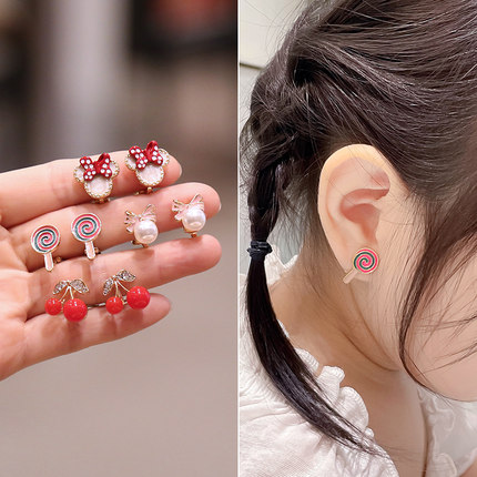 儿童卡通可爱无耳洞耳夹女宝宝耳钉假耳环节日表演饰品小女孩