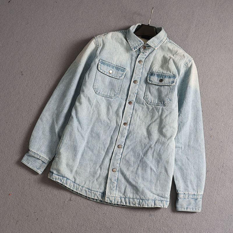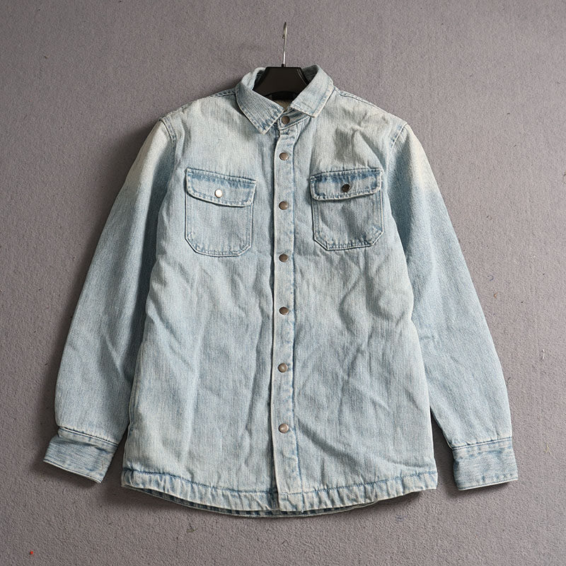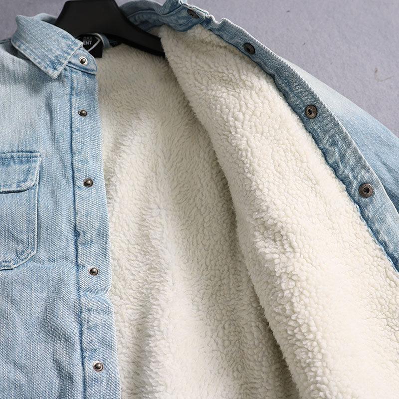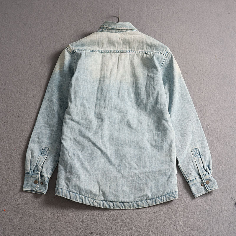 冬季加绒复古水洗牛仔衬衫外套男