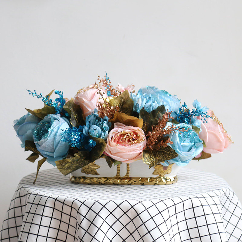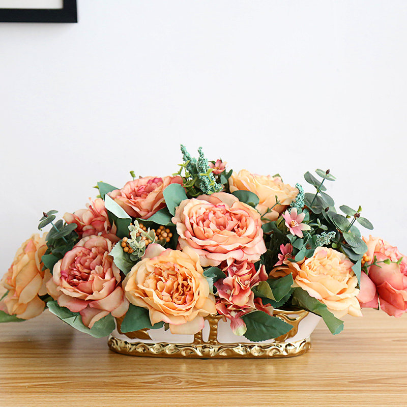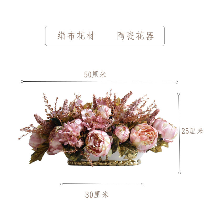 欧式宫廷牡丹仿真花艺套装摆件美式玫瑰装饰假花客厅餐桌玄关摆设