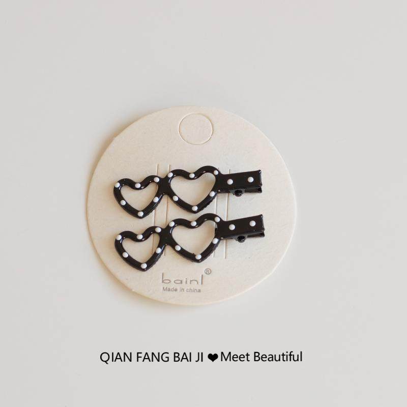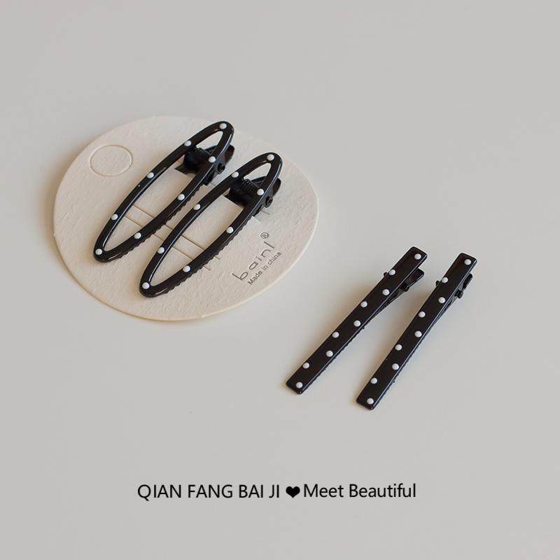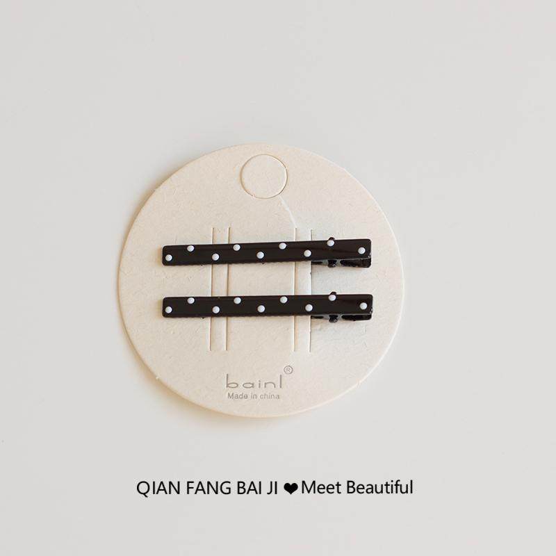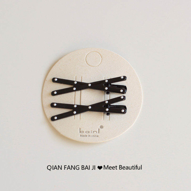 1对装~黑白波点刘海发卡鸭嘴夹子前额碎发夹蝴蝶结爱心一字夹新款