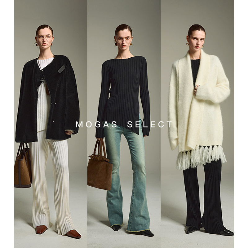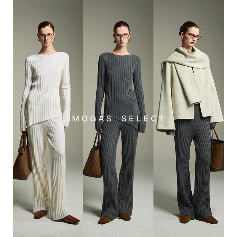 Mogas纯羊毛坑条针织套装