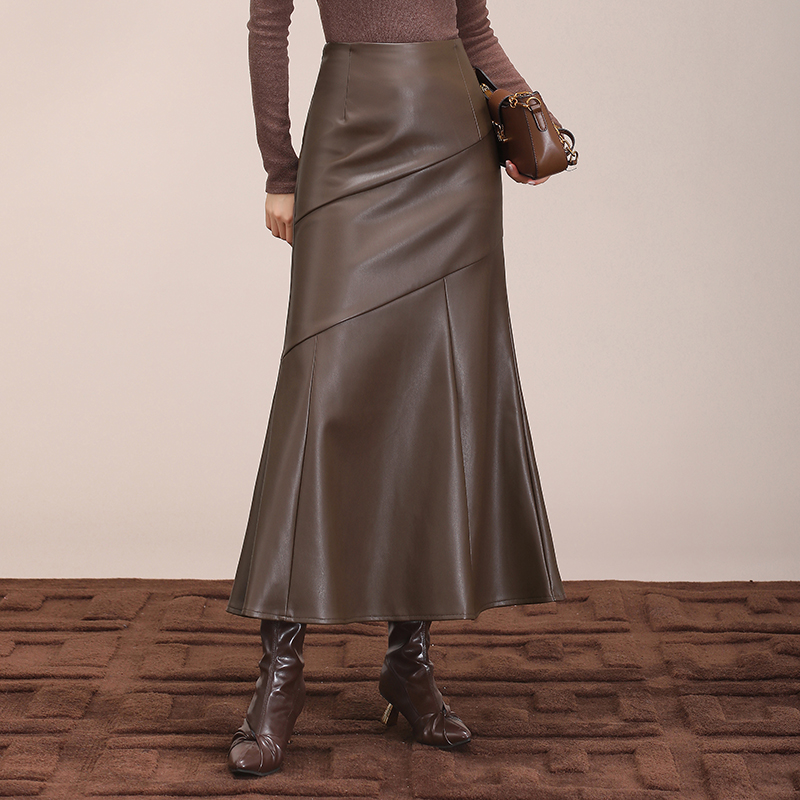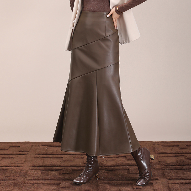 皮裙半身裙女鱼尾裙长裙2025秋冬新款高腰pu皮包臀裙高个子一步裙
