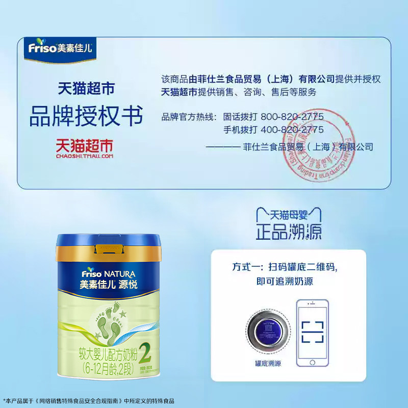 【新客专享】美素佳儿源悦较大婴儿配方奶粉2段(6-12月)800g+400g