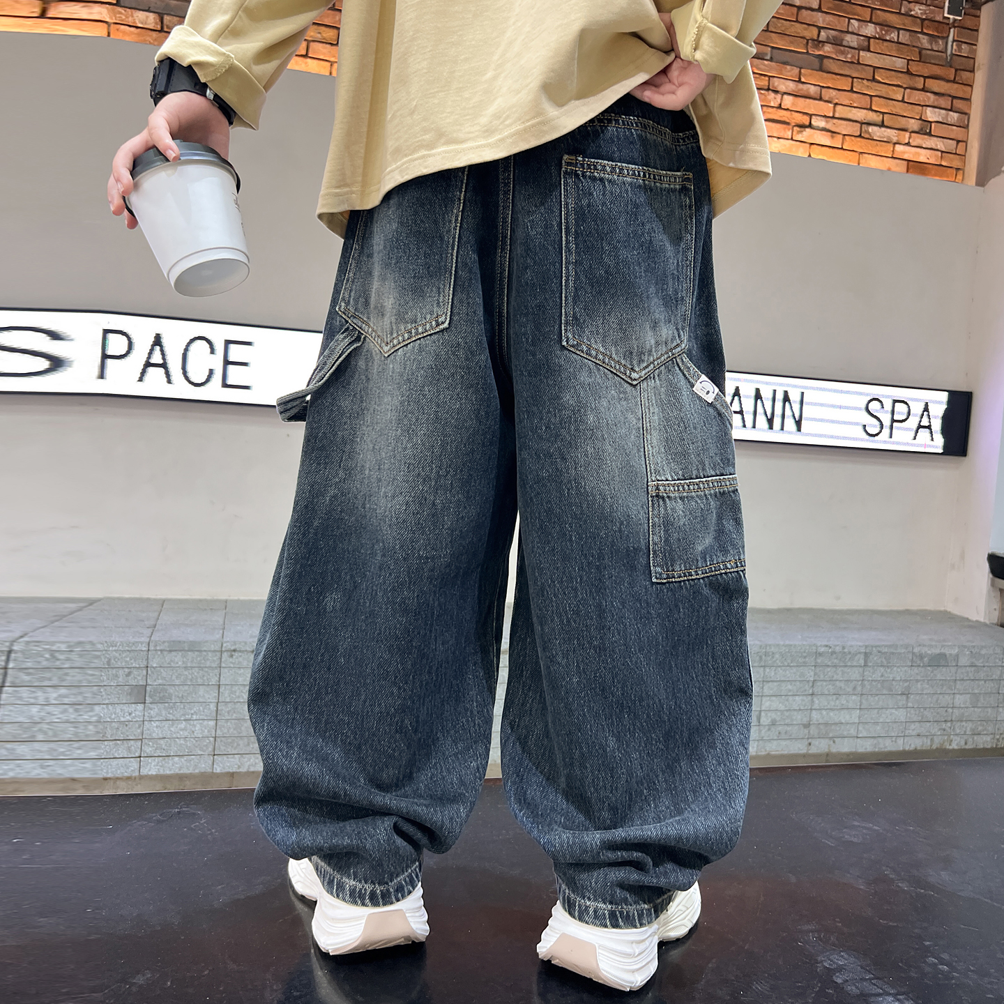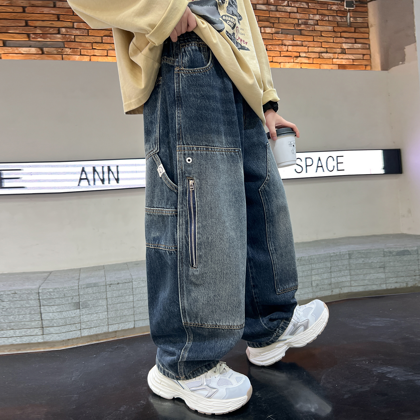 男童牛仔裤中大童秋冬装裤子2025新款冬季痞帅气休闲加绒工装长裤