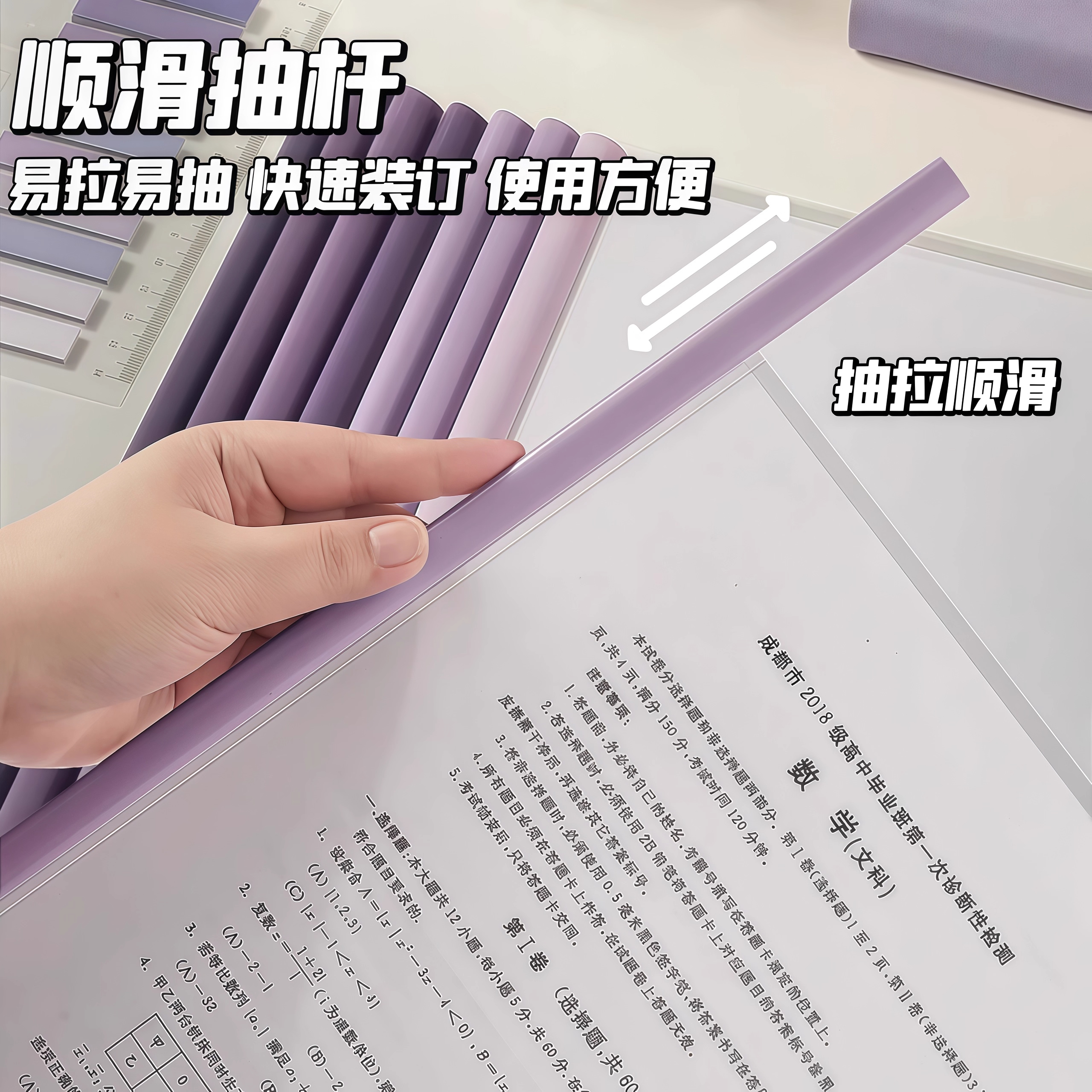 A4纸抽杆夹文件夹加厚抽拉杆夹透明固定学生试卷夹书皮书夹档案夹