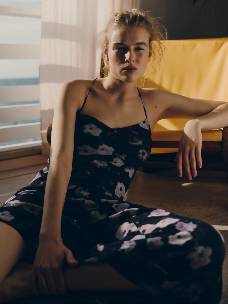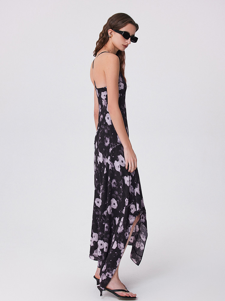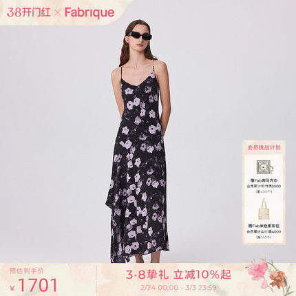 Fabrique【夜花园】真丝桑蚕丝混纺花卉印花连衣裙女春夏新款